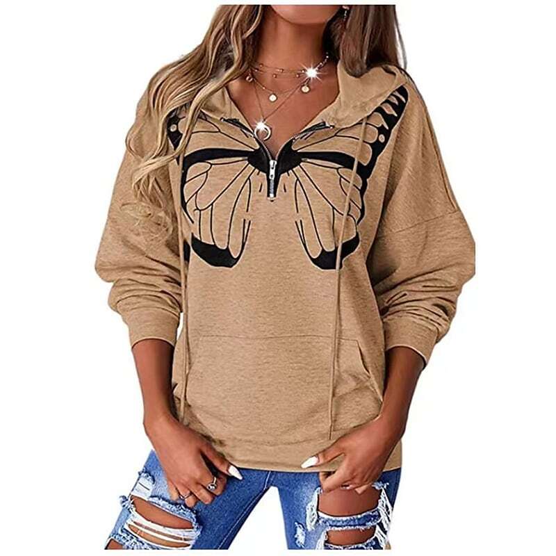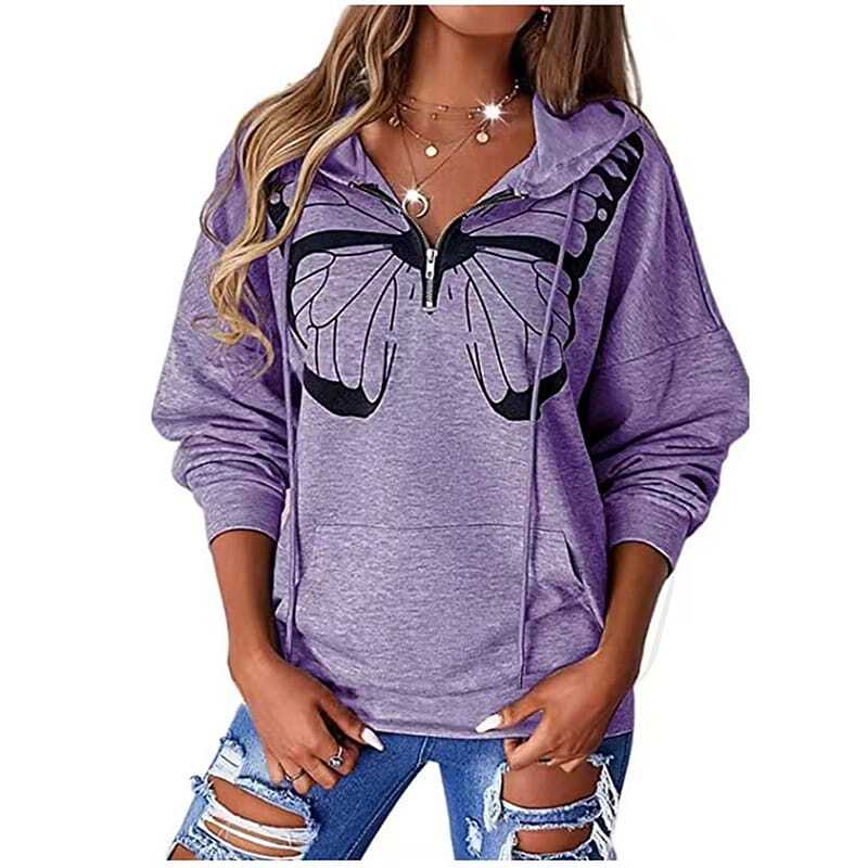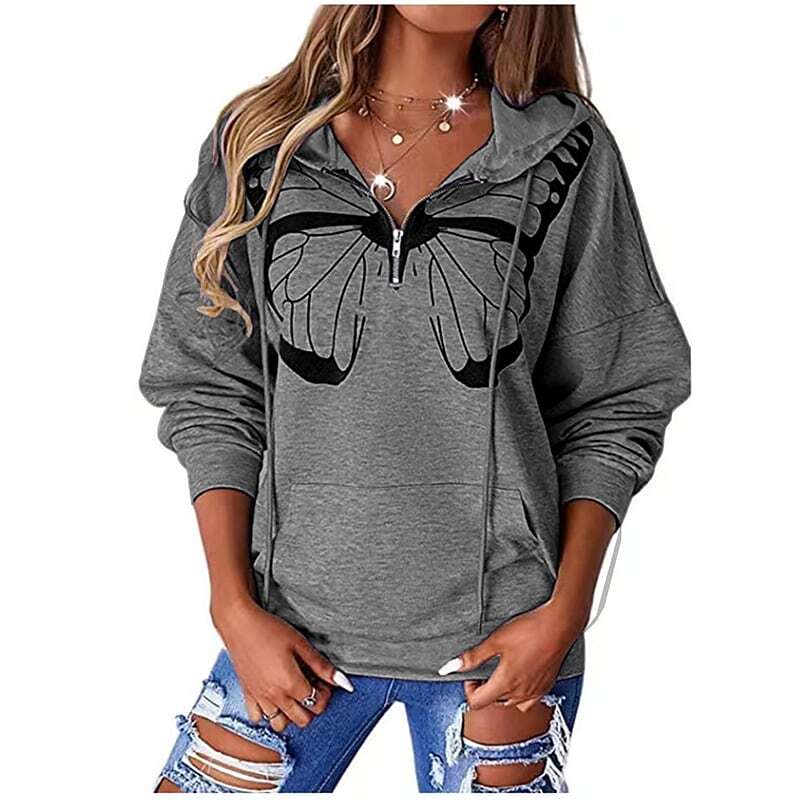 Pullover Hoodie Sweatshirt Butterfly Print Casual Daily Other Prints Casual Hoodies Sweatshirts White Gray Purple.