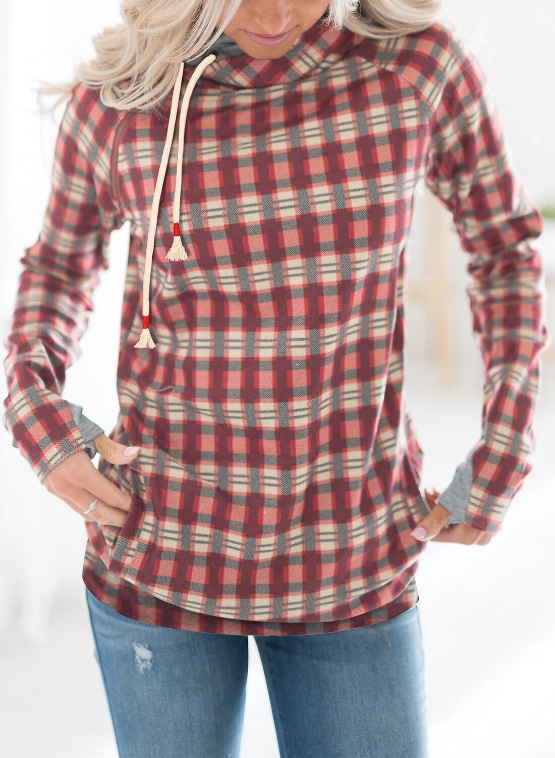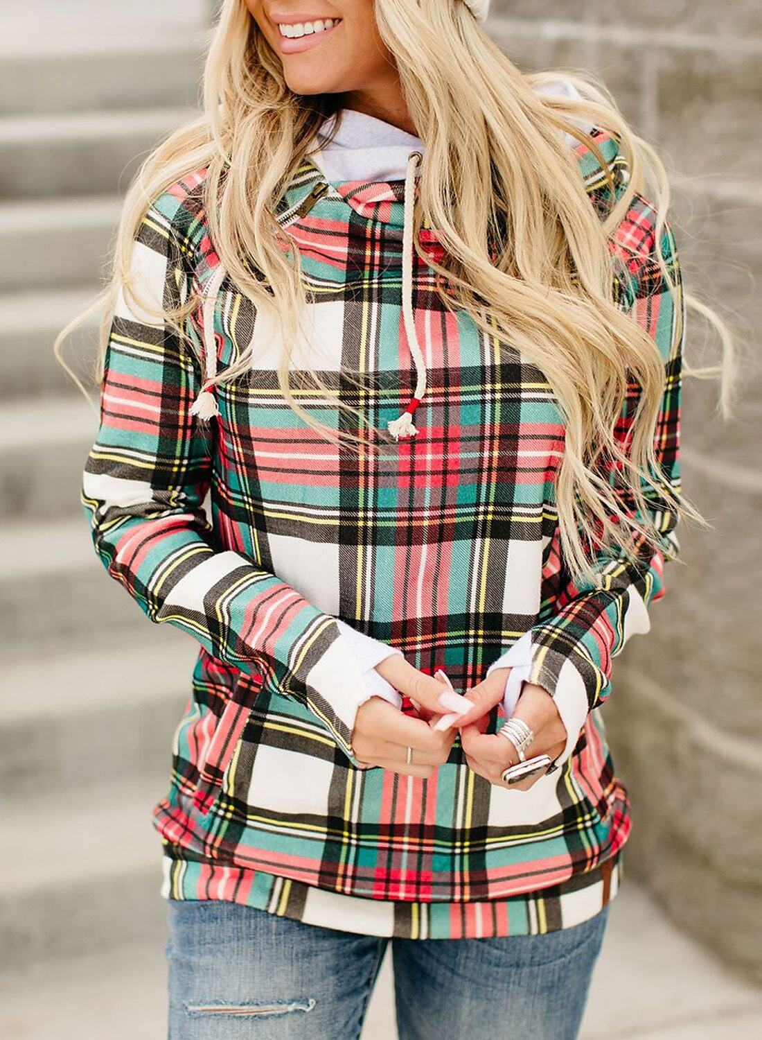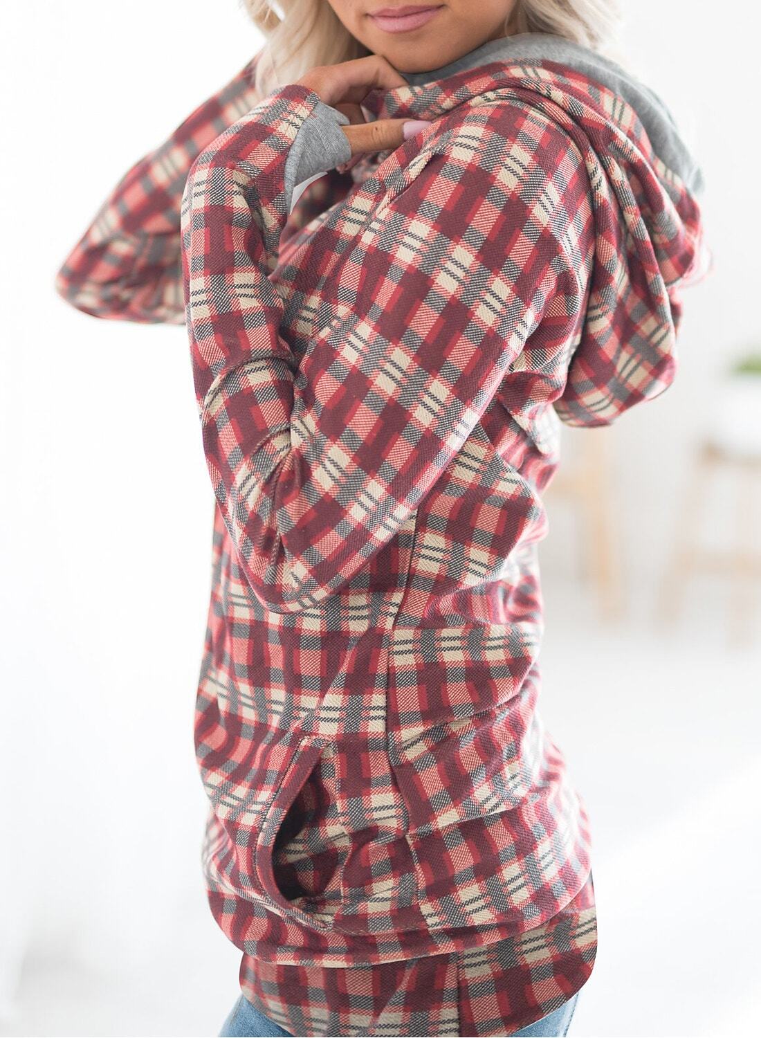 Pullover Hoodie Sweatshirt Active Streetwear Print Rainbow Red Plaid Daily Hooded Long Sleeve.