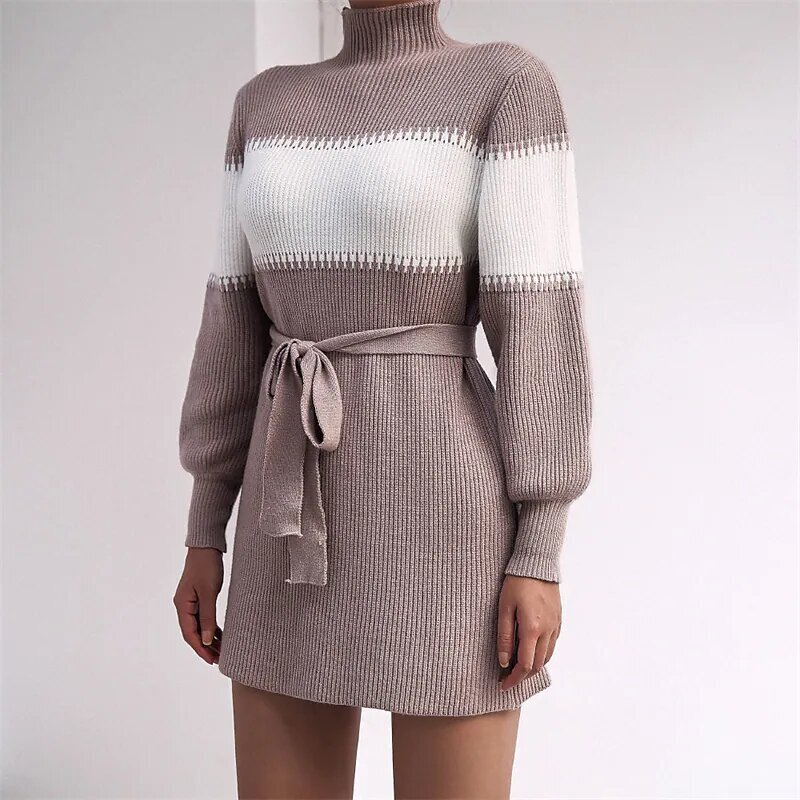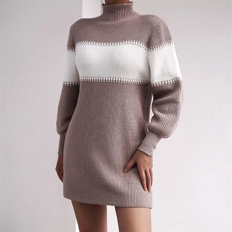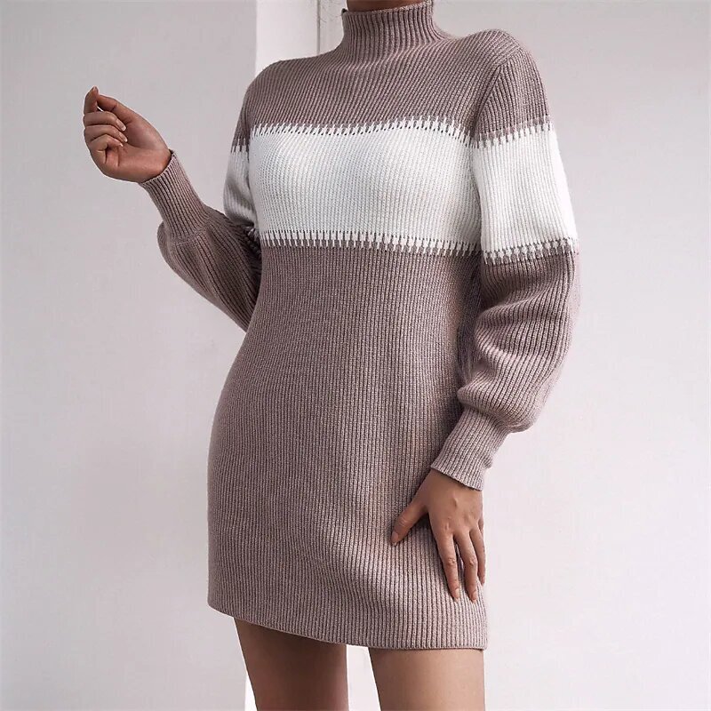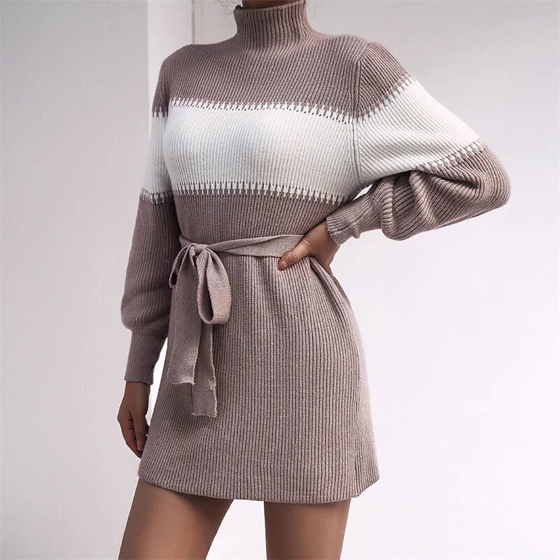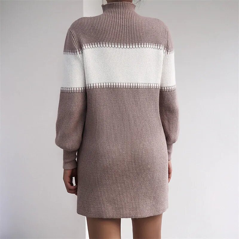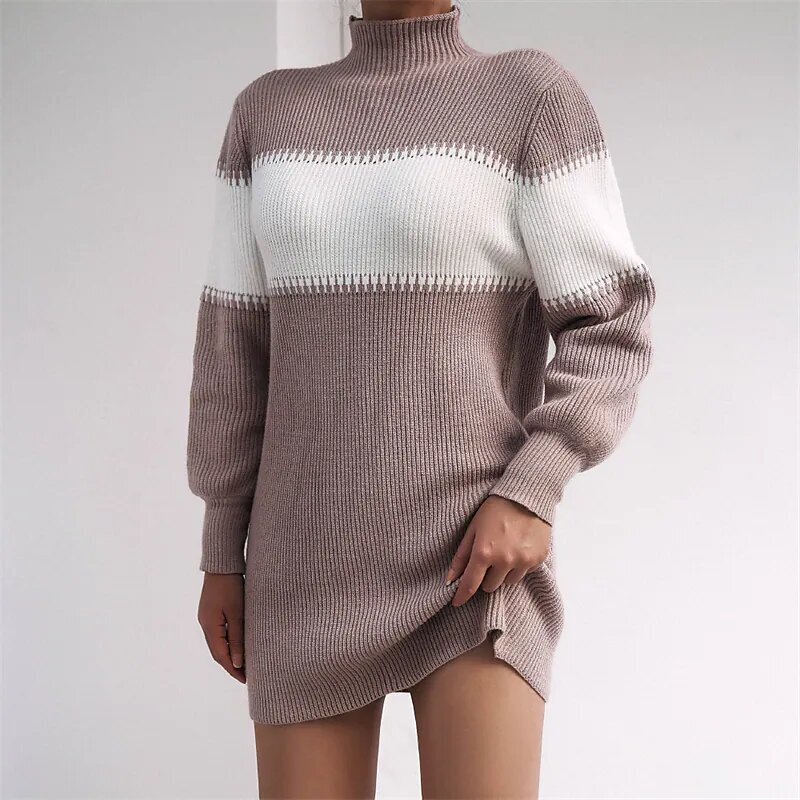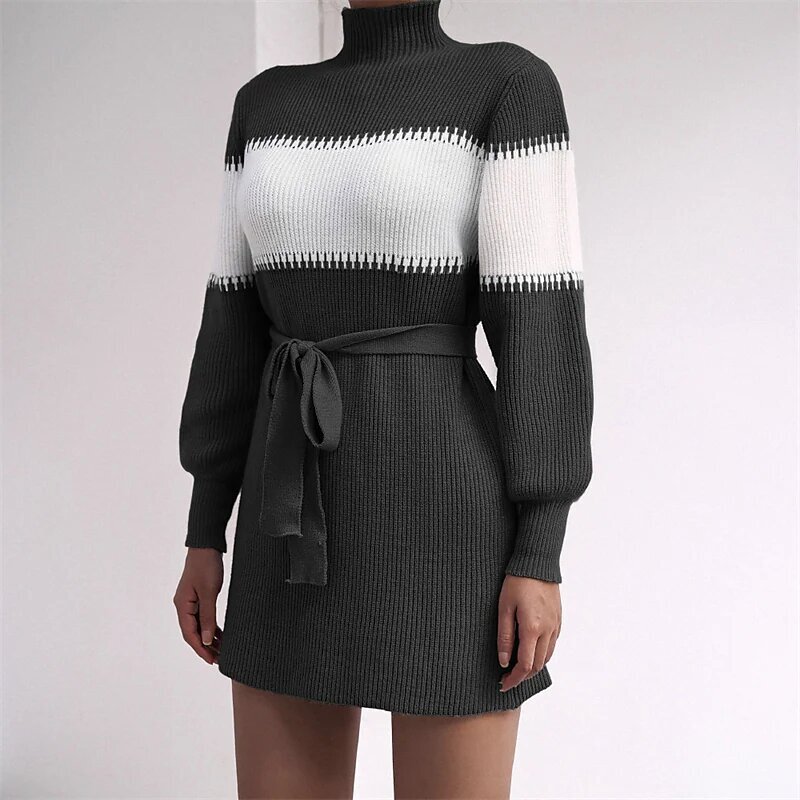 Sweater Jumper Knit Knitted Color Block Turtleneck Stylish Elegant Home Daily Fall Winter Black Gray.