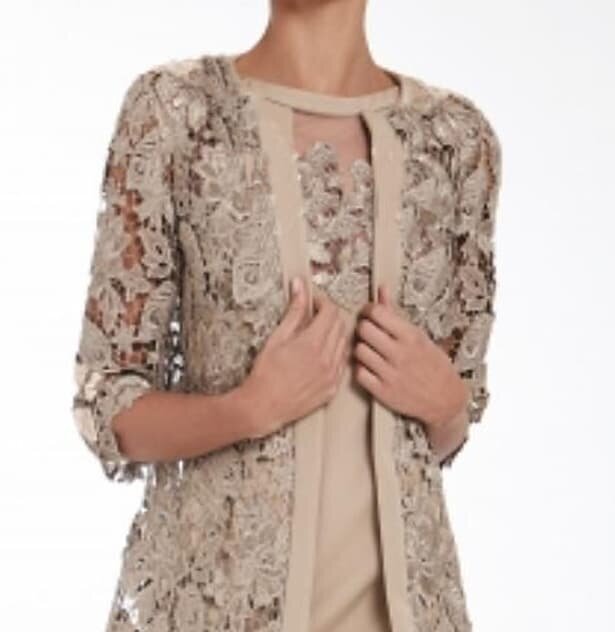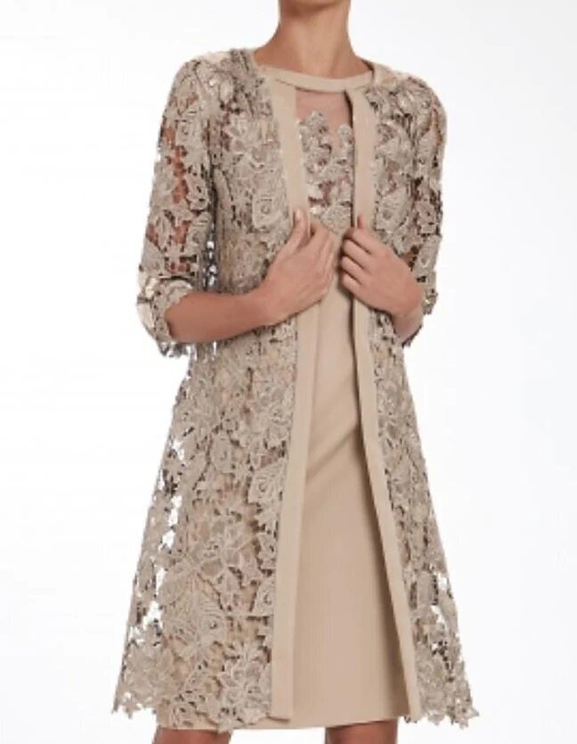 Dress Camel 3/4 Length Sleeve Print Hollow Out Spring Summer Crew Neck Elegant Modern.