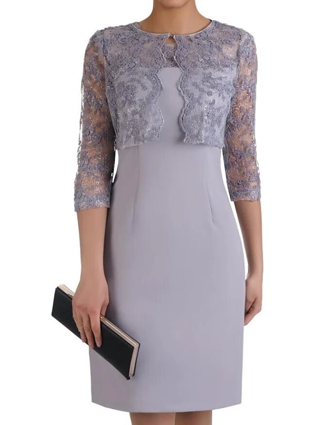 Dress Knee Length Dress Purple 3/4 Length Sleeve Pure Color Hollow Out Spring Summer Crew Neck Elegant Modern.