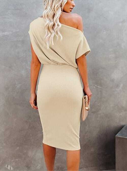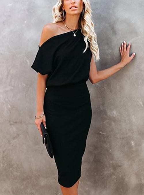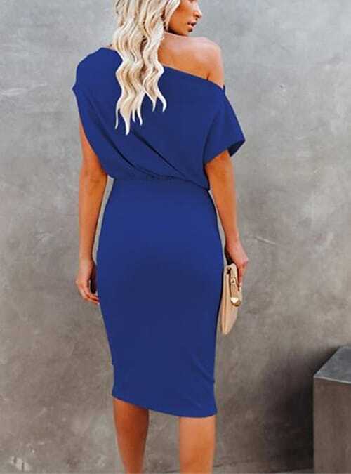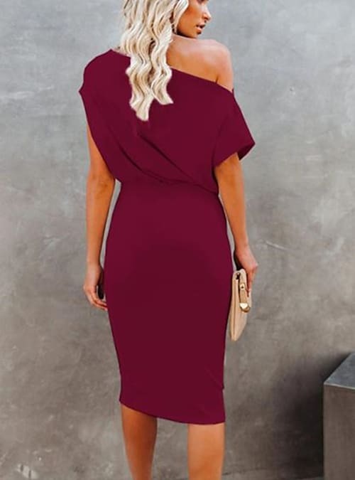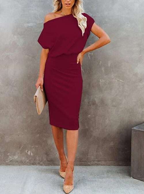 Dress Knee Length Dress Black Blue Wine Khaki Short Sleeve Solid Color Cold Shoulder Summer Off Shoulder Elegant.