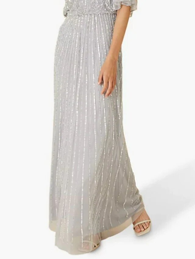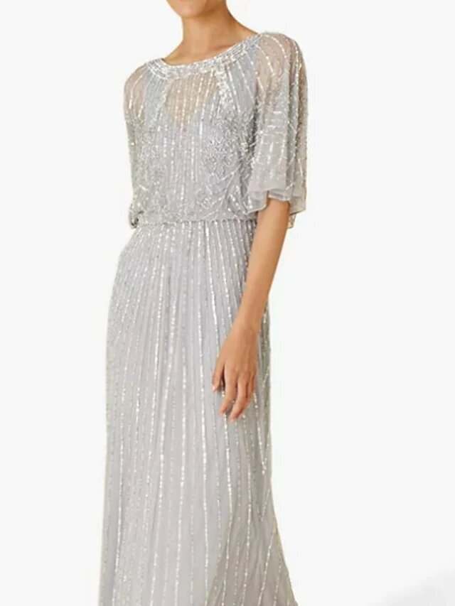 Light gray Half Sleeve Embroidery Ruched Spring Summer Crew Neck Elegant Modern.