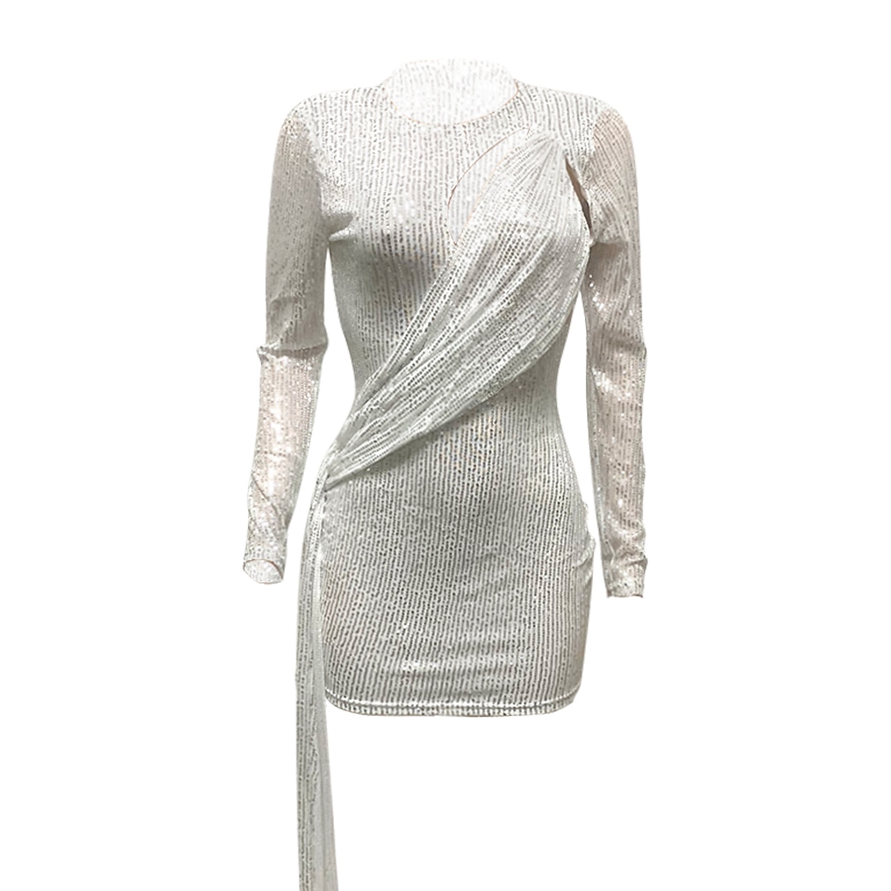 Women's Sheath Dress Short Mini Dress White Black Red Long Sleeve Solid Color Sequins Fall Summer V Neck Sexy Party Party Dress.