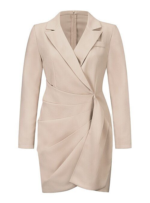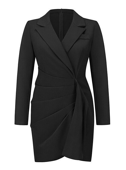 Mini Dress Green Black Red Beige Long Sleeve Pure Color Ruched Fall Spring Shirt Collar Elegant Fashion.
