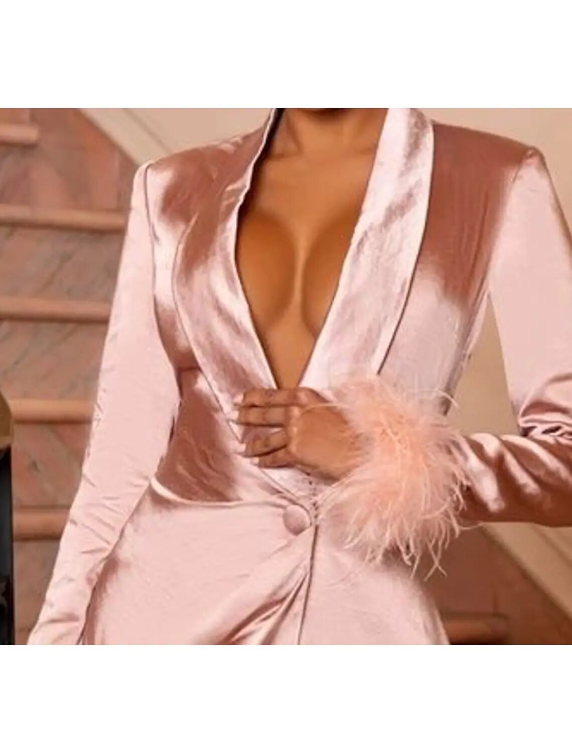 Sleeve Pure Color Feather Fall Winter V Neck Fashion Modern