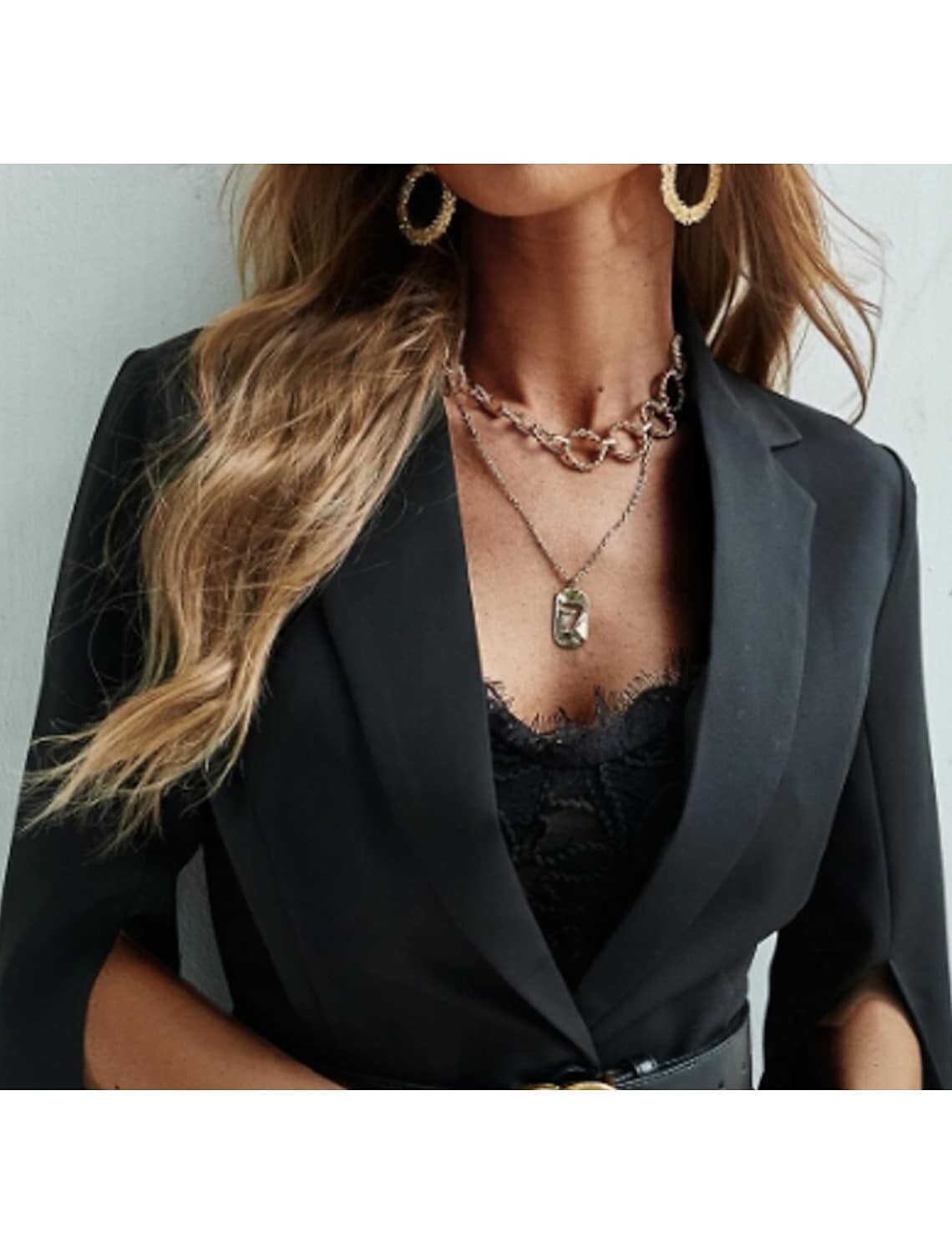Sleeve Pure Color Split Ruched With Belt Fall Winter V Neck Modern Mature