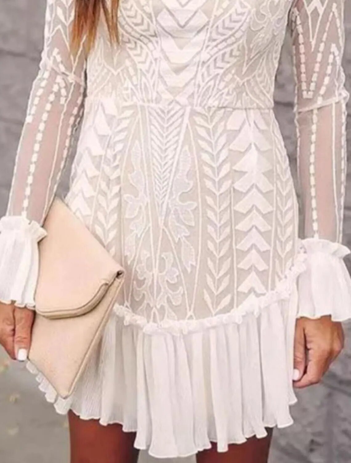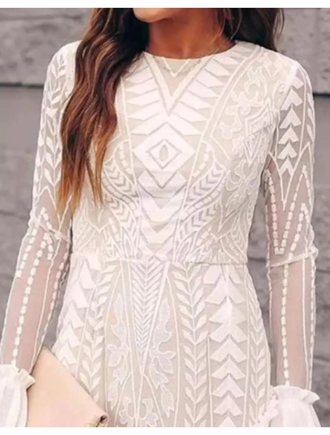 Sleeve Solid Color Lace Spring Summer Round Neck Fashion Modern 2022