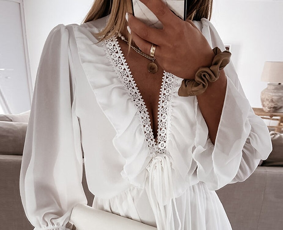 Sleeve Solid Color Layered Ruched Spring Summer Deep V Stylish Modern 2022