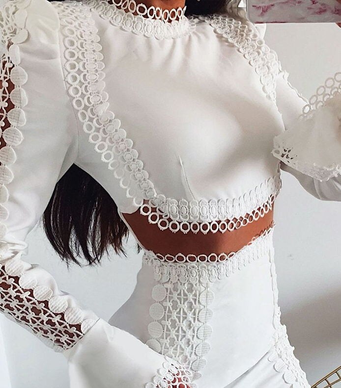 Sleeve Solid Color Hollow To Waist Fall Winter Round Neck Stylish Modern