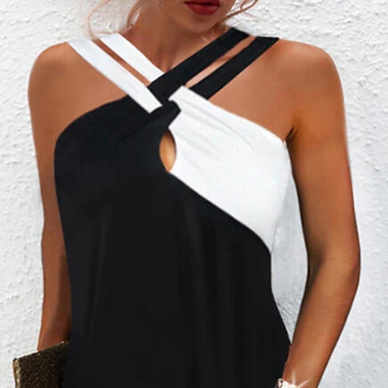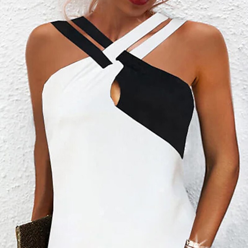Sleeveless Color Block Backless Lace Patchwork Spring Summer Spaghetti Strap Elegant