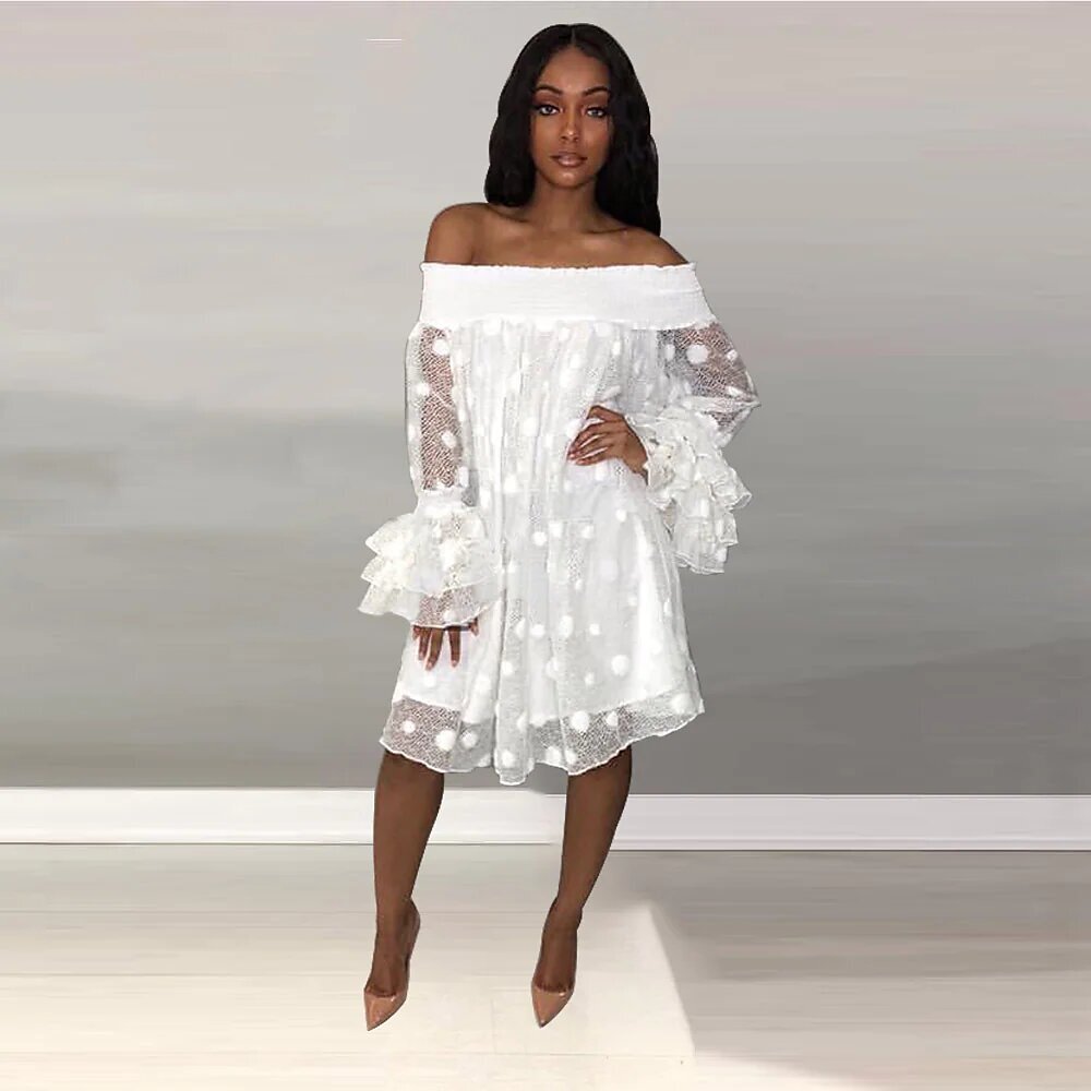 Long Sleeve Polka Dot Mesh Spring Summer Off Shoulder Hot Elegant 2022.