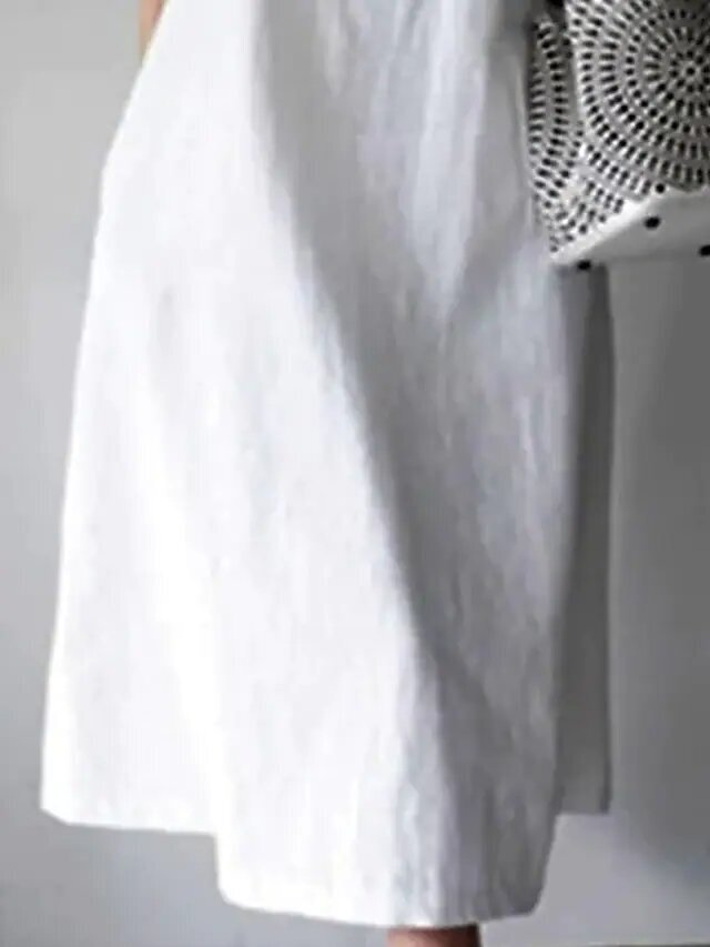 White Sleeveless Pure Color Spring Summer Crew Neck Casual Loose Boom Sale Dress.