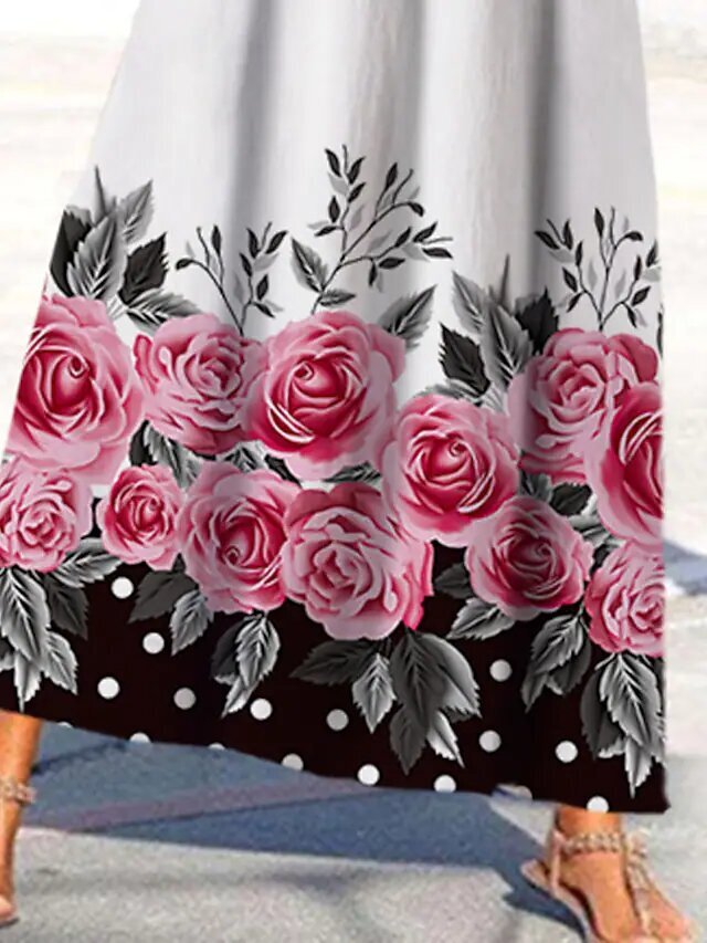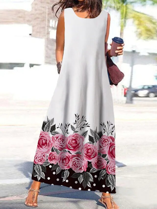 Green White Sleeveless Floral Print Print Spring Summer Round Neck Casual Vacation.