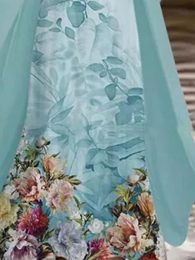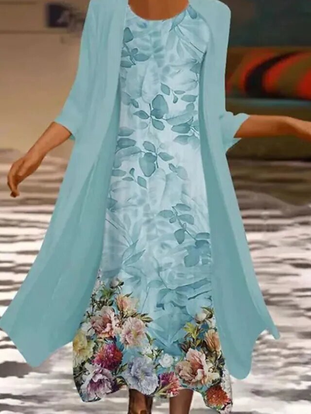 Light Blue 3/4 Length Sleeve Floral Print Fall Winter Round Neck Stylish Mature.