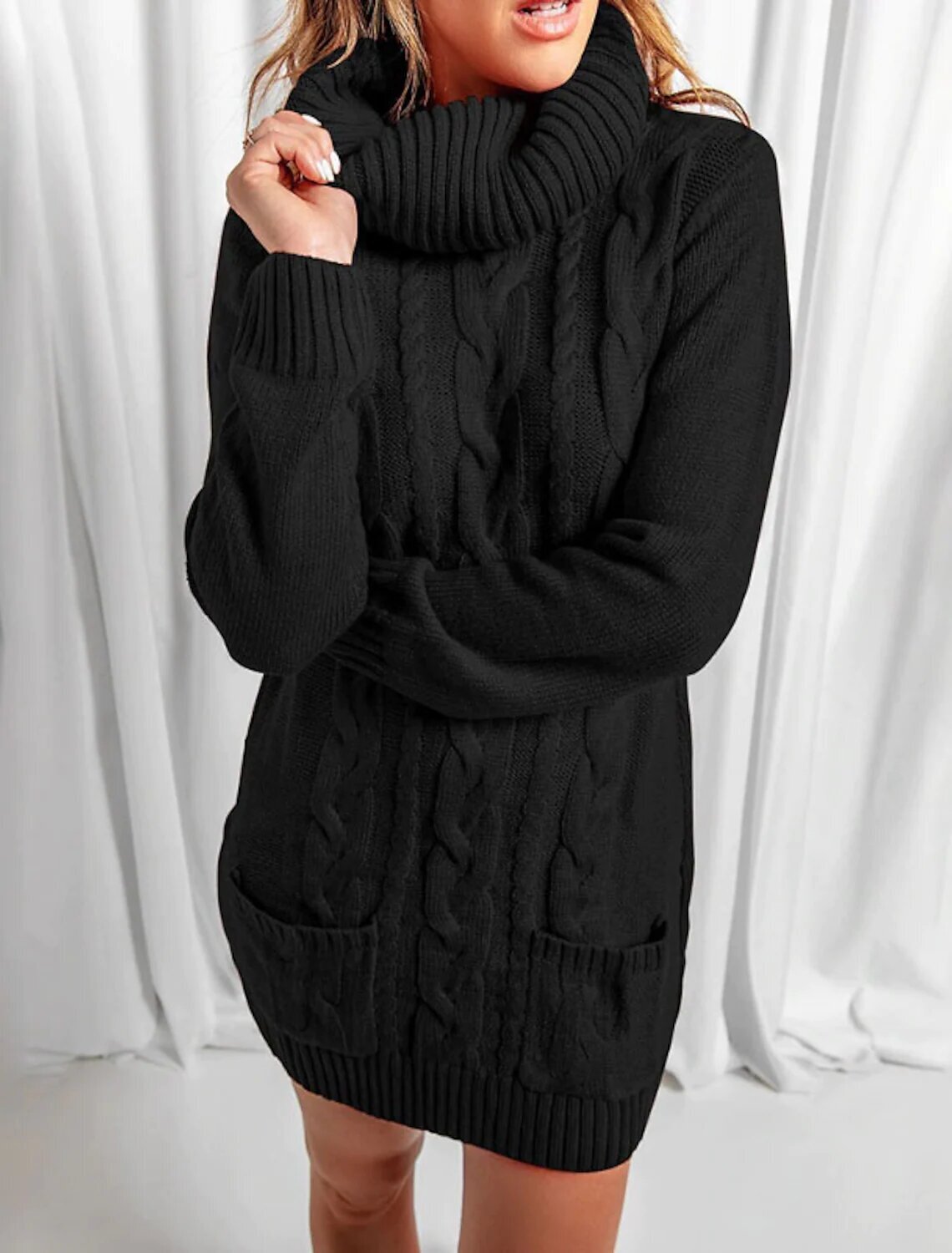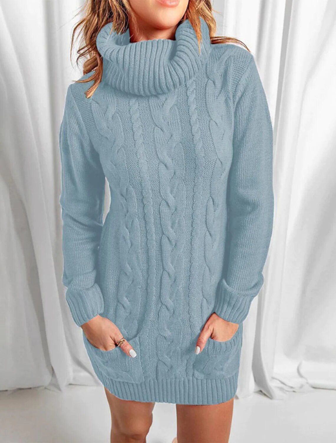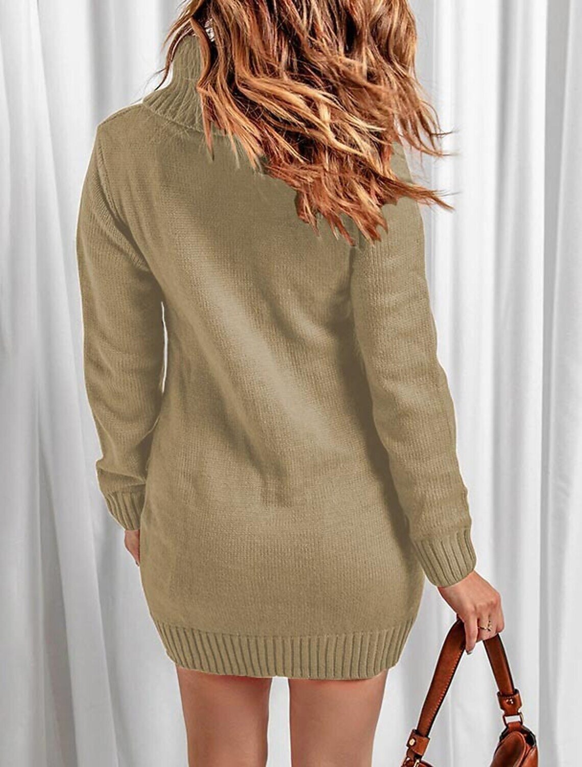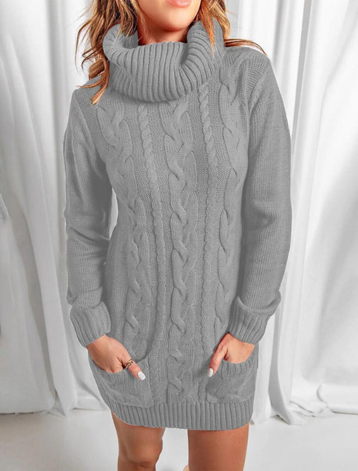 Long Sleeve Pure Color Pocket Knit Fall Winter Turtleneck Casual