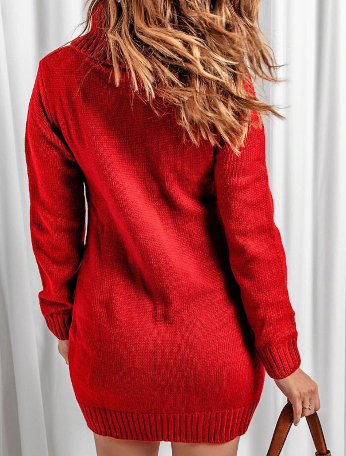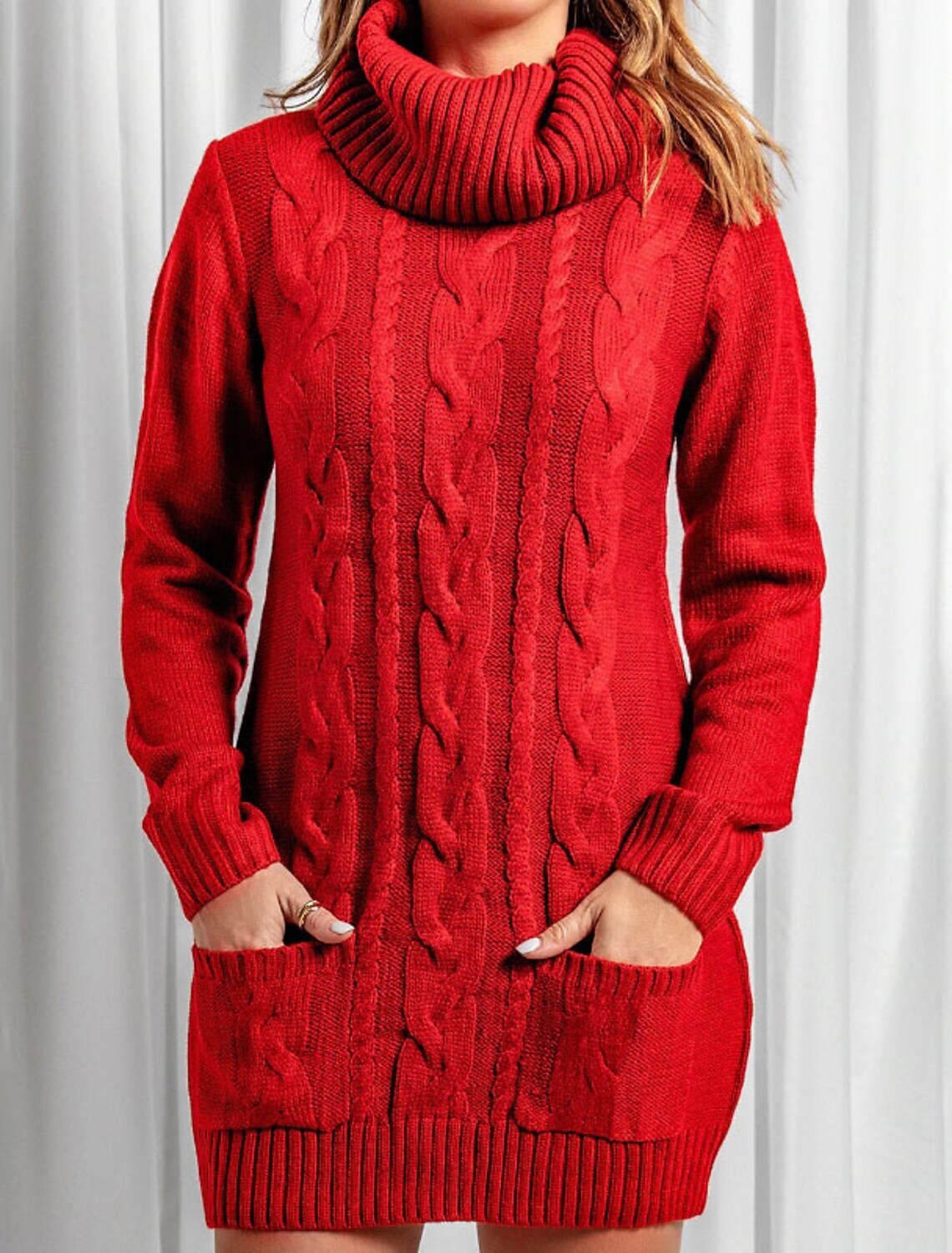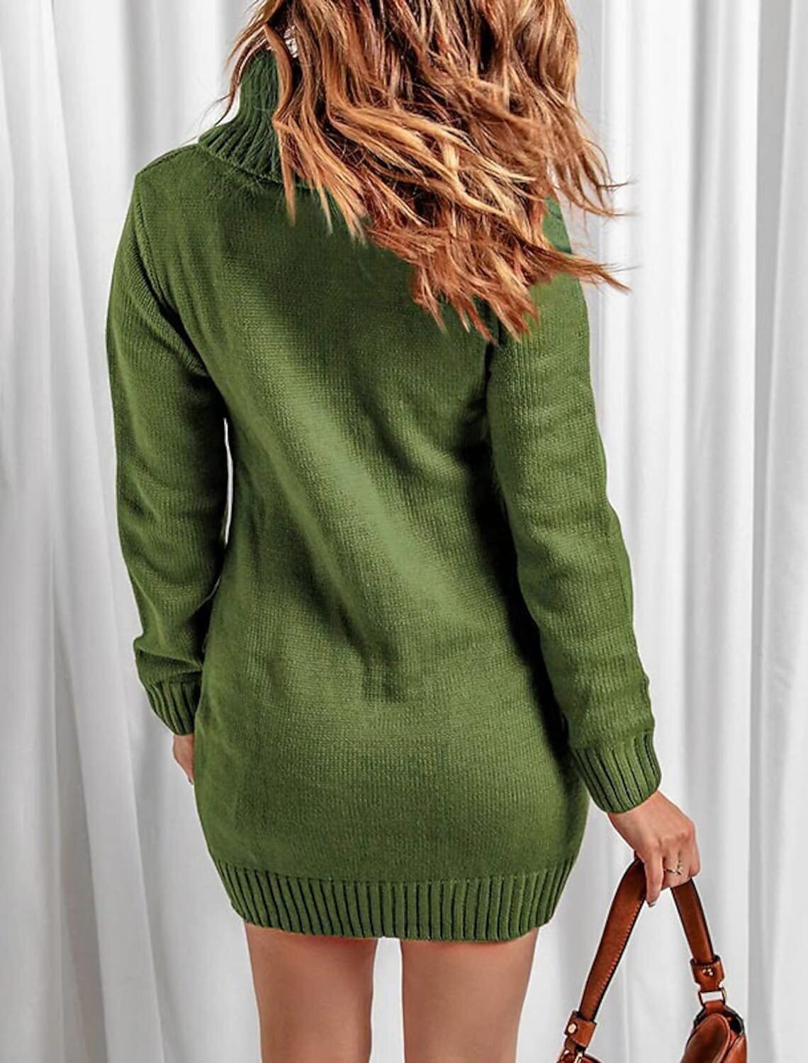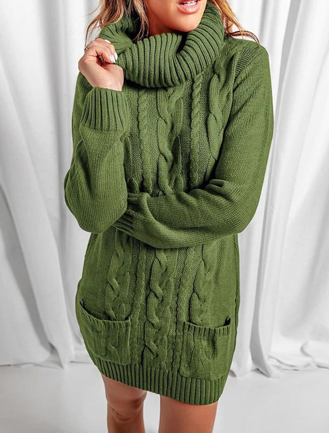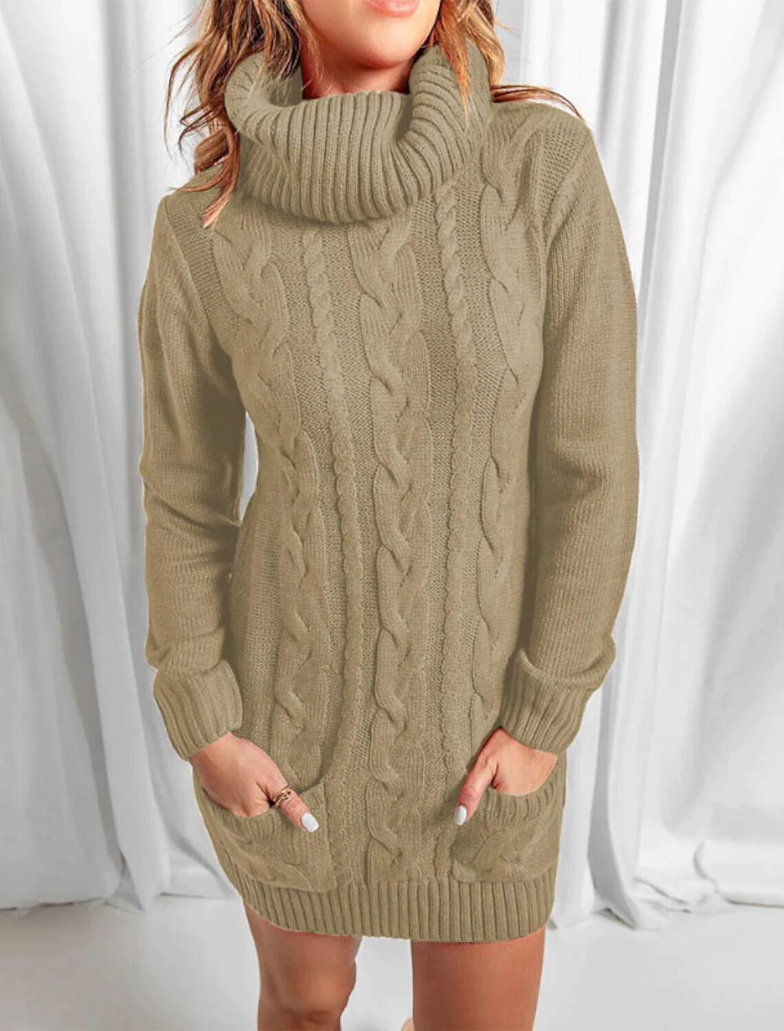 Long Sleeve Pure Color Pocket Knit Fall Winter Turtleneck Casual