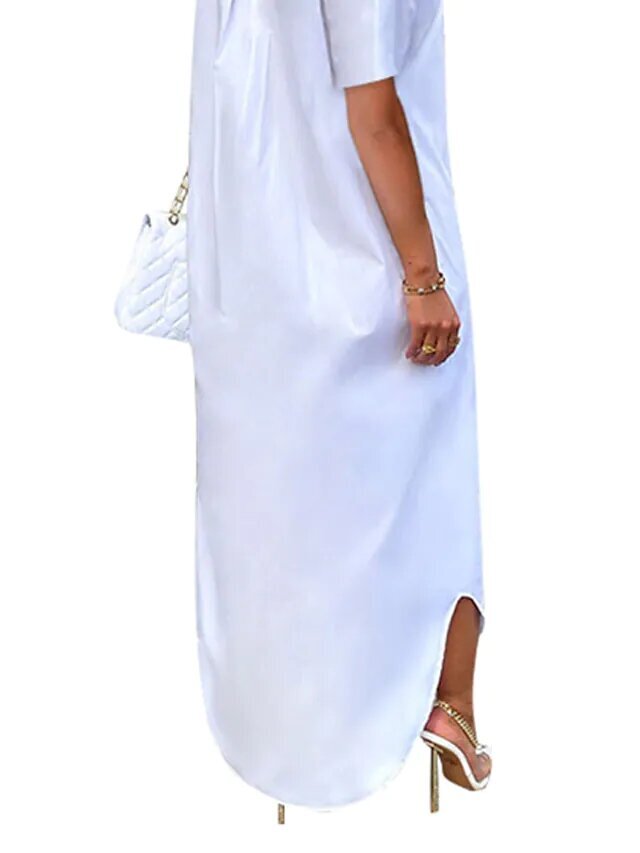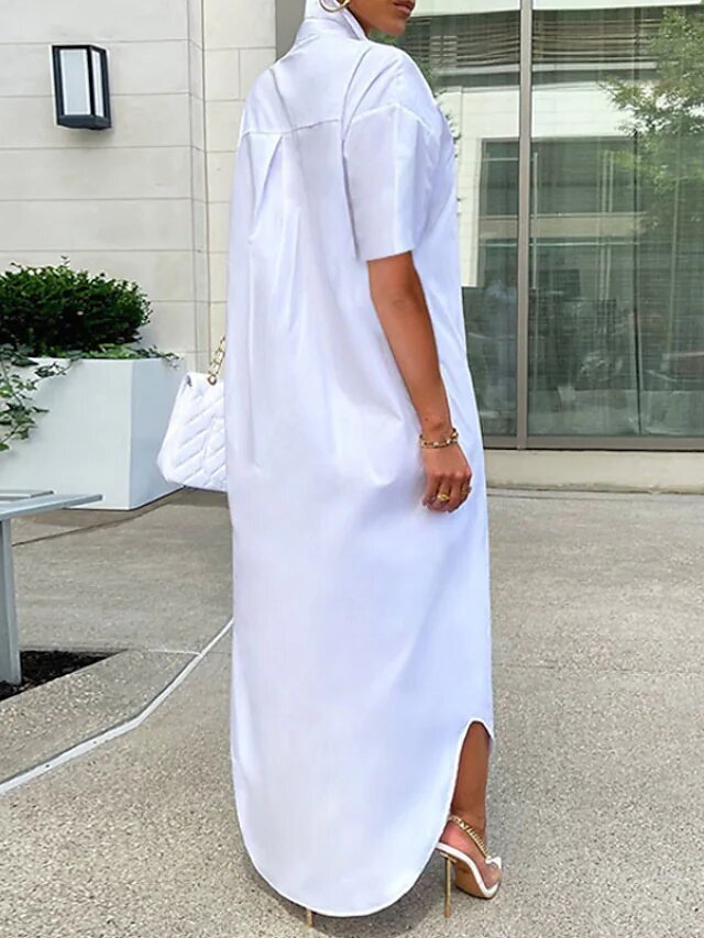 White Short Sleeve Pure Color Button Spring Summer Shirt Collar Casual.