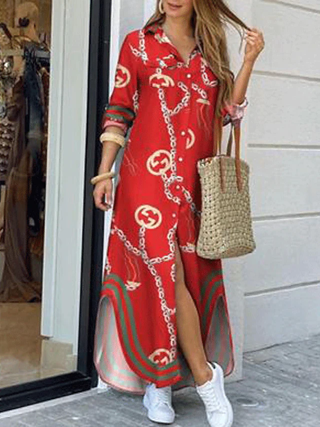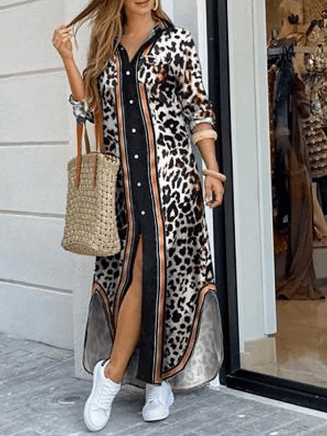 - Dress Leopard Pattern white Blue White Black Army Green Dark Blue Rainbow Red Light Blue 3/4 Length Sleeve Print Pure Color Split Button Print Fall Spring Shirt Collar.