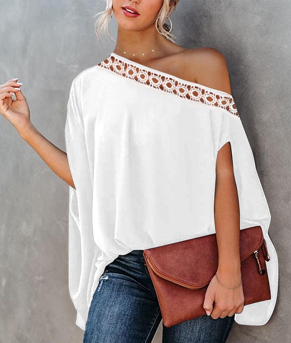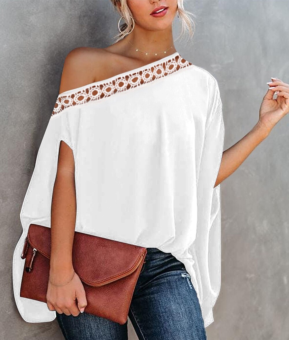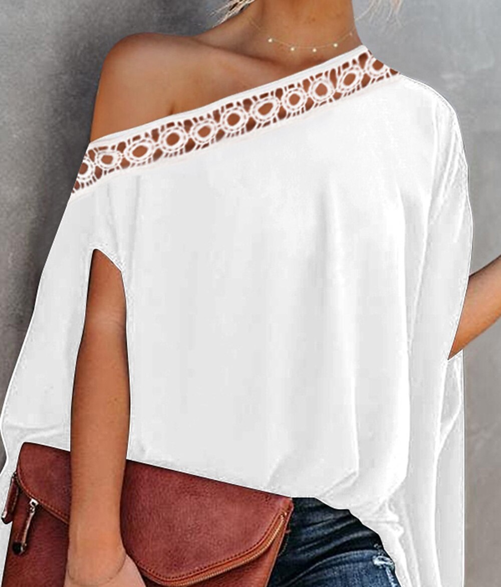 Sleeve Lace Trims One Shoulder Casual Streetwear