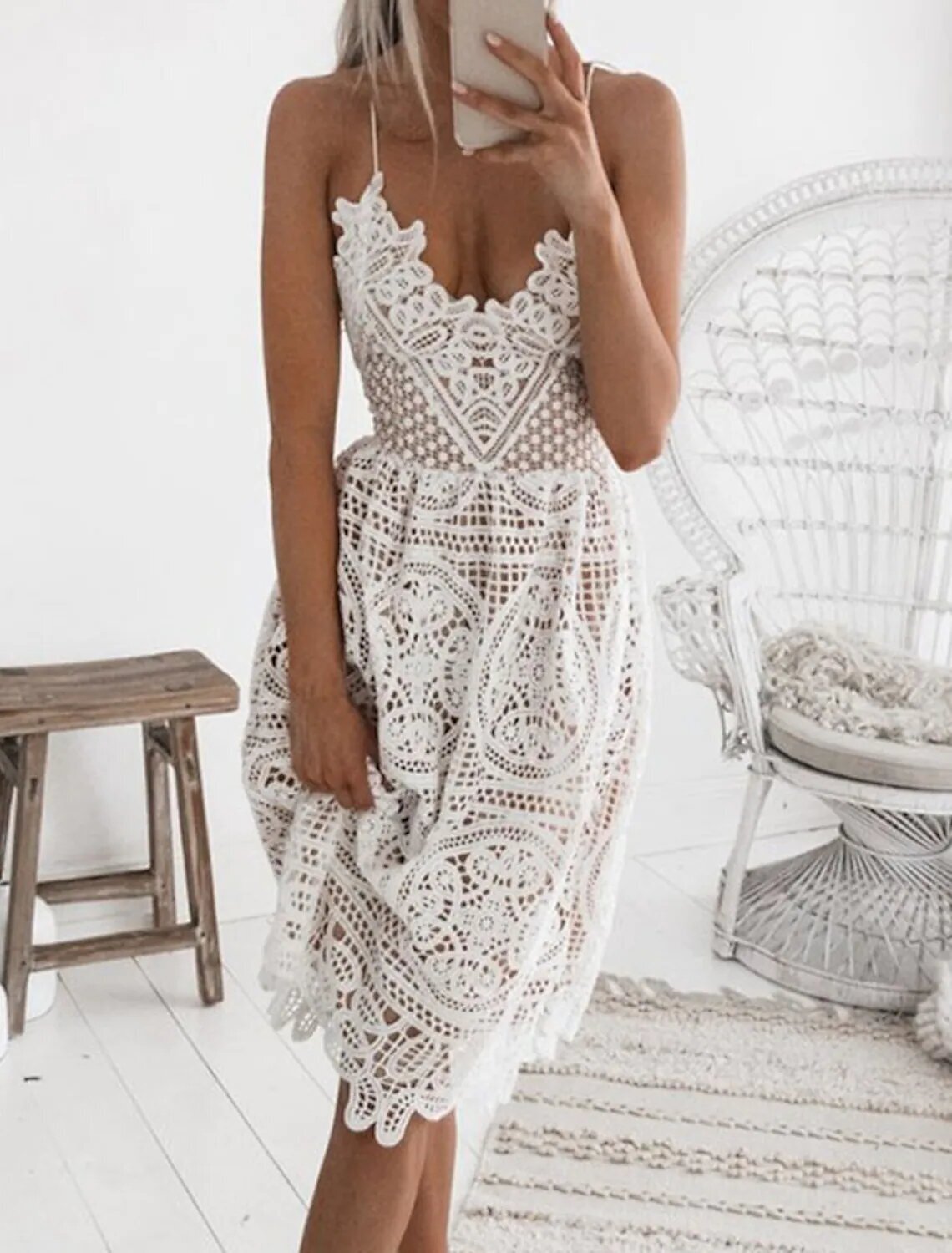 Sleeveless Solid Color Backless Lace Fall Summer V Neck Casual Sexy Party 2022