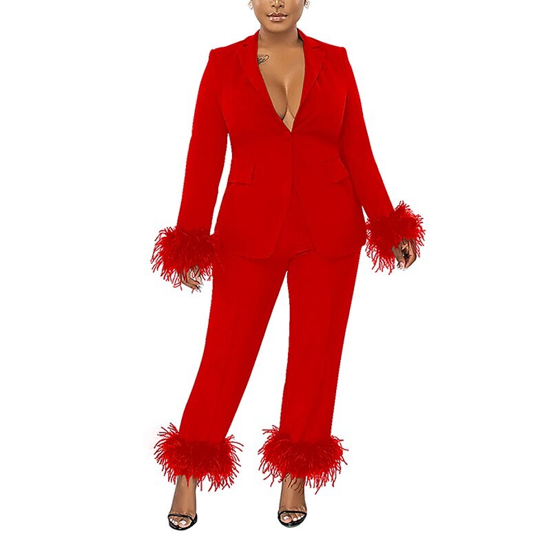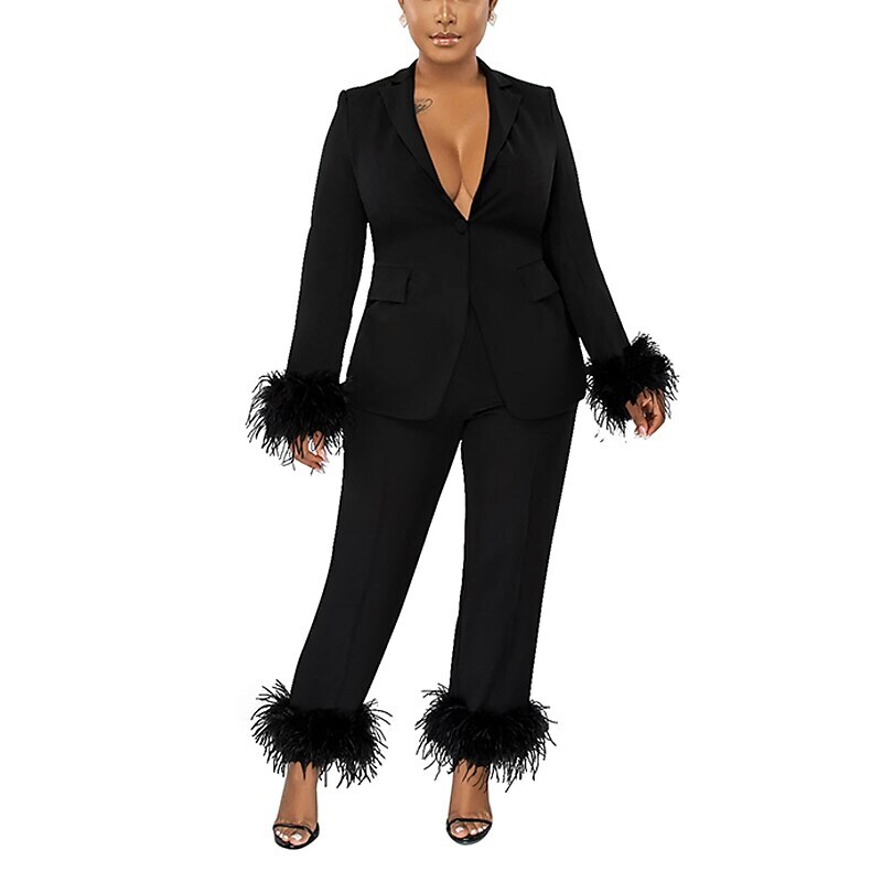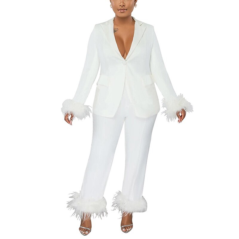 Suits Warm Breathable Formal Outdoor Street Pocket Feather Single Breasted Deep V Active Modern Comfortable Street Style Solid Color Regular Fit.