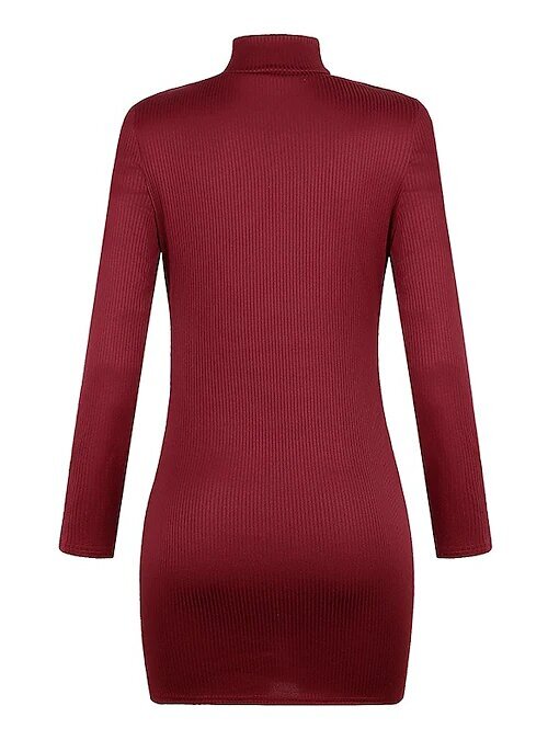 Mini Dress Black Wine Dark Gray Navy Blue Long Sleeve Solid Color Patchwork Fall Round Neck Sexy.