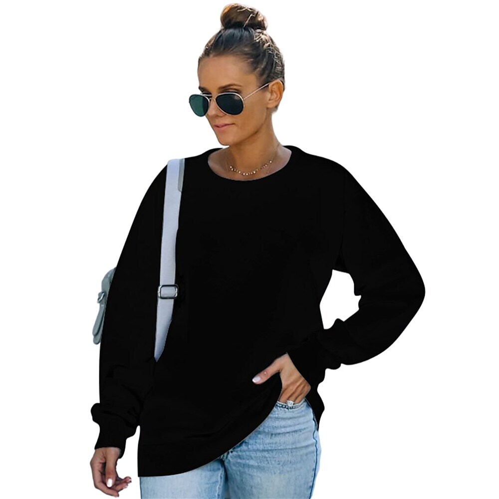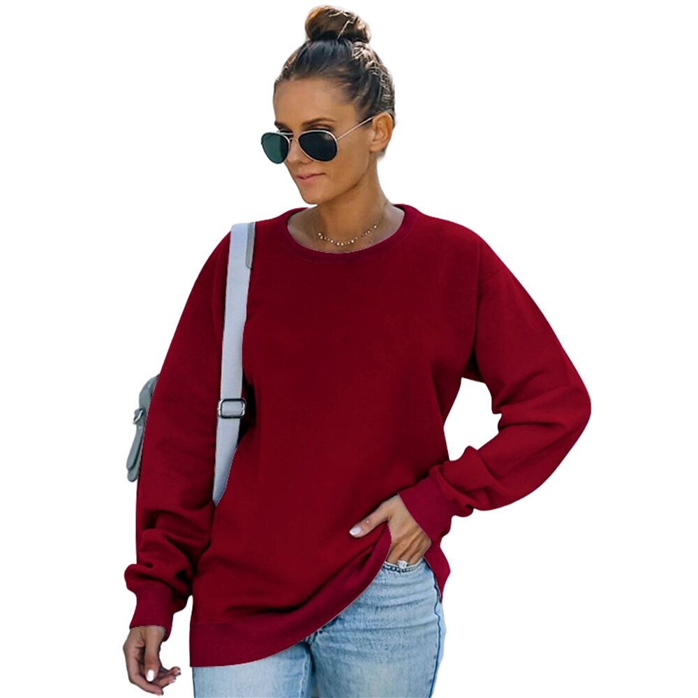 Sweatshirt Casual Wine Red Green White Chinese Style Loose Casual Round Neck Long Sleeve.