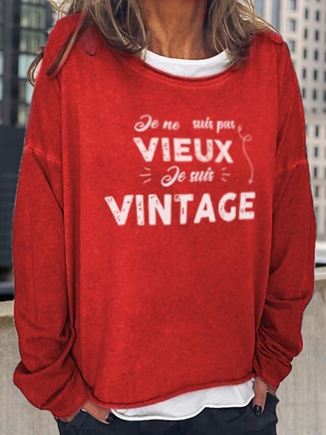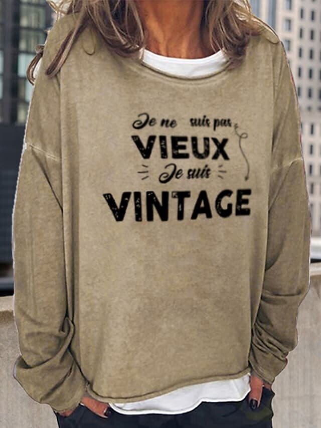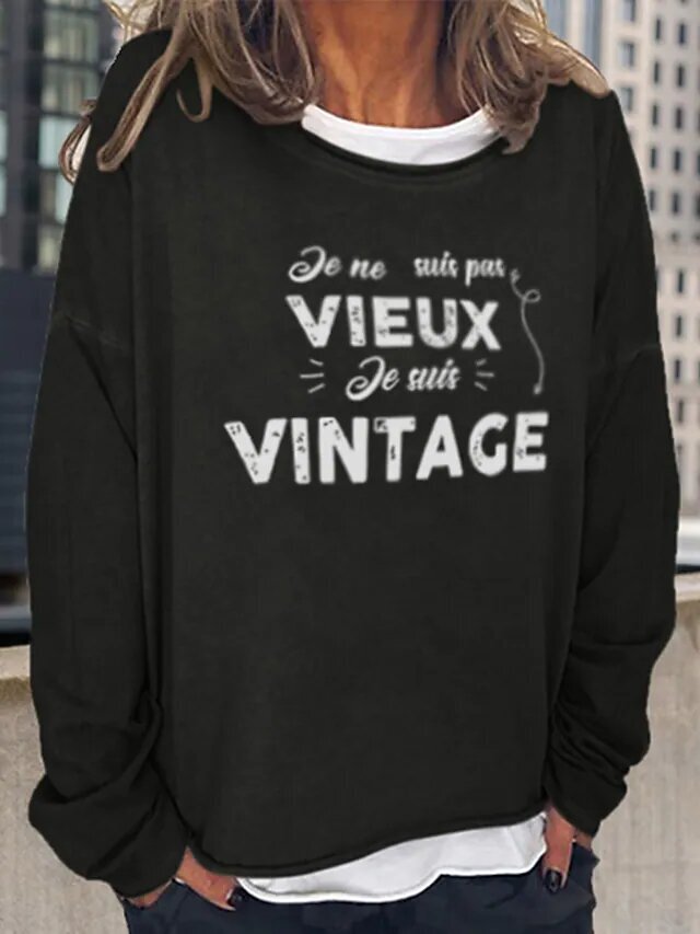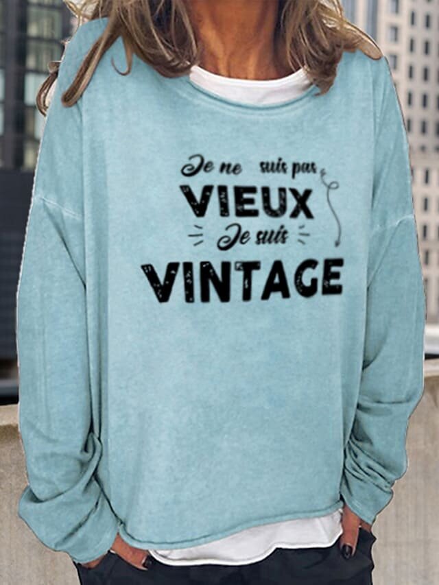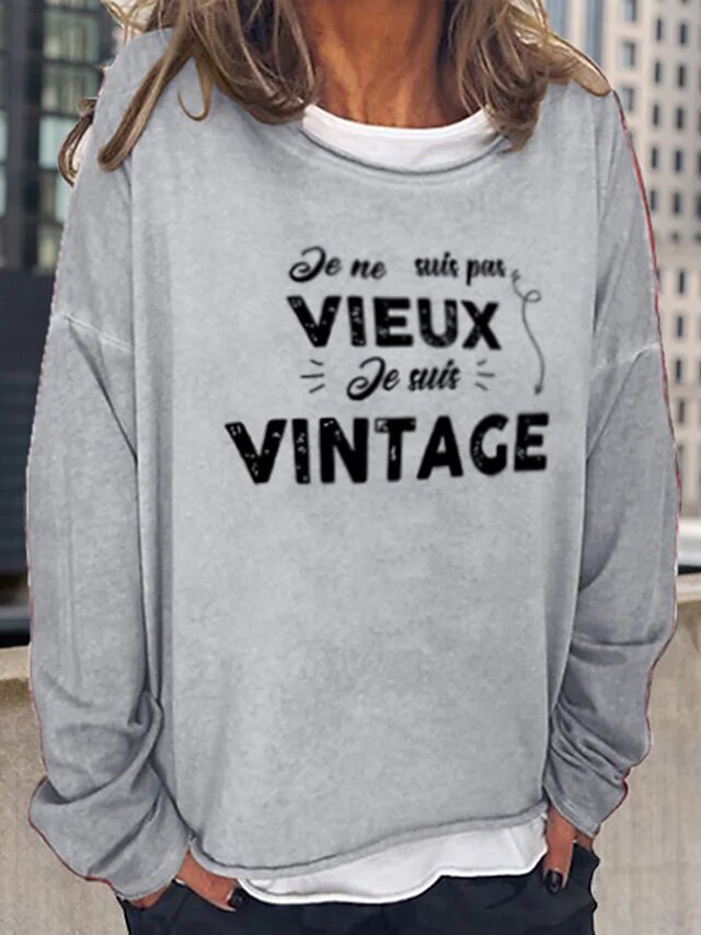 Streetwear Monograms Print Black Blue Gray Text Daily Round Neck Long Sleeve.
