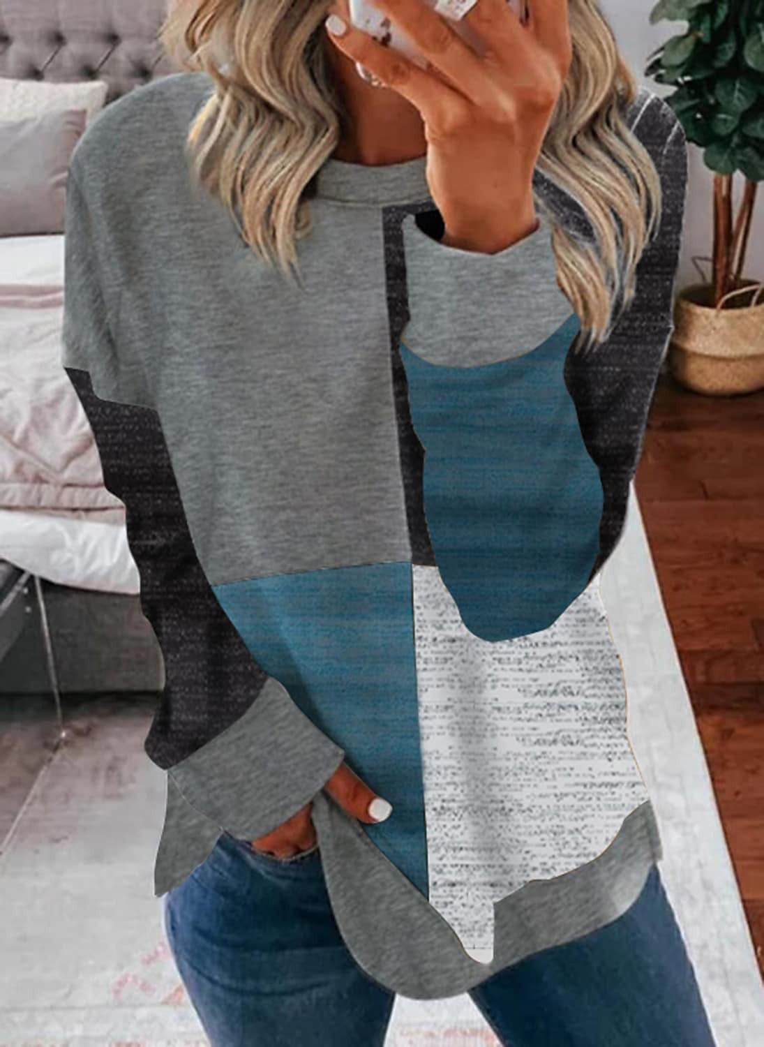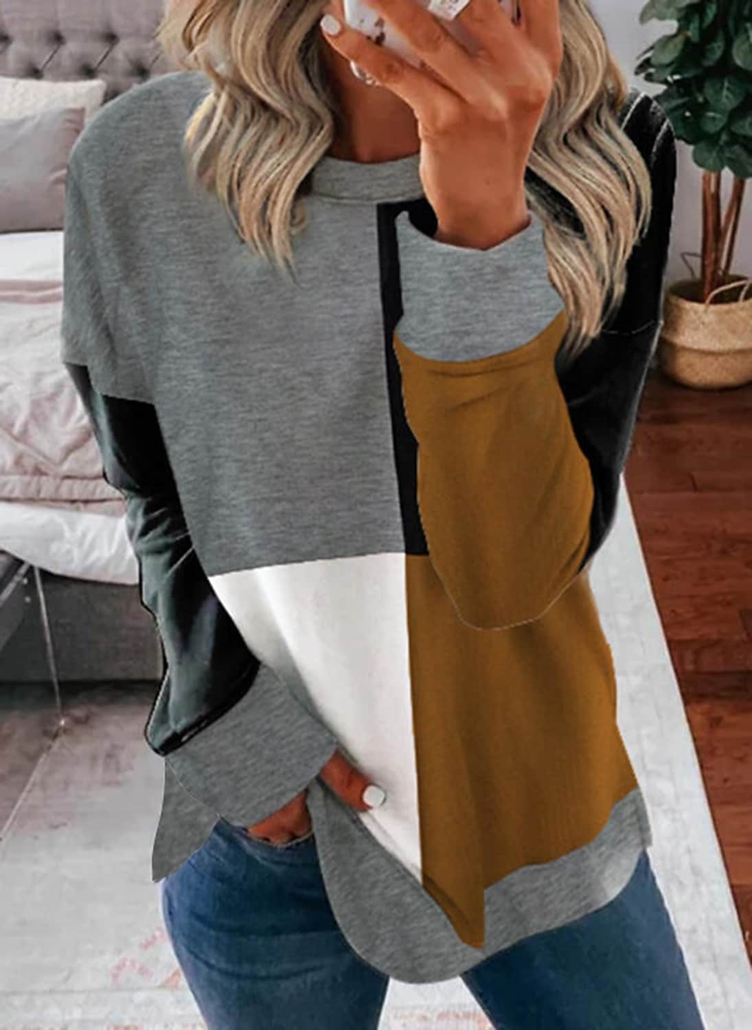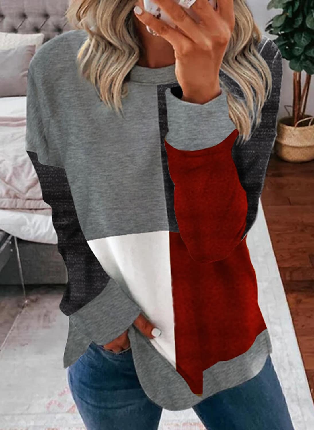 Sweatshirt Pullover Basic Blue Khaki Red Color Block Street Round Neck Long Sleeve.