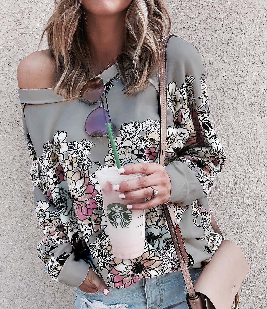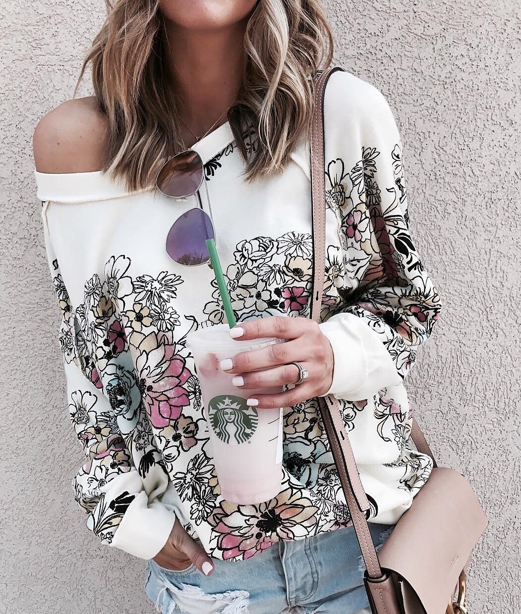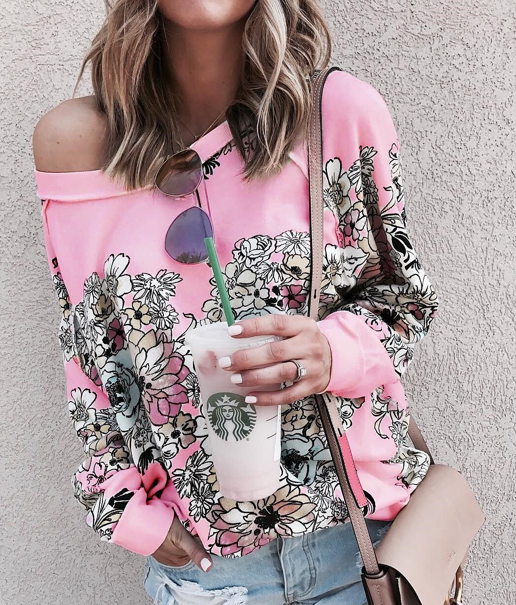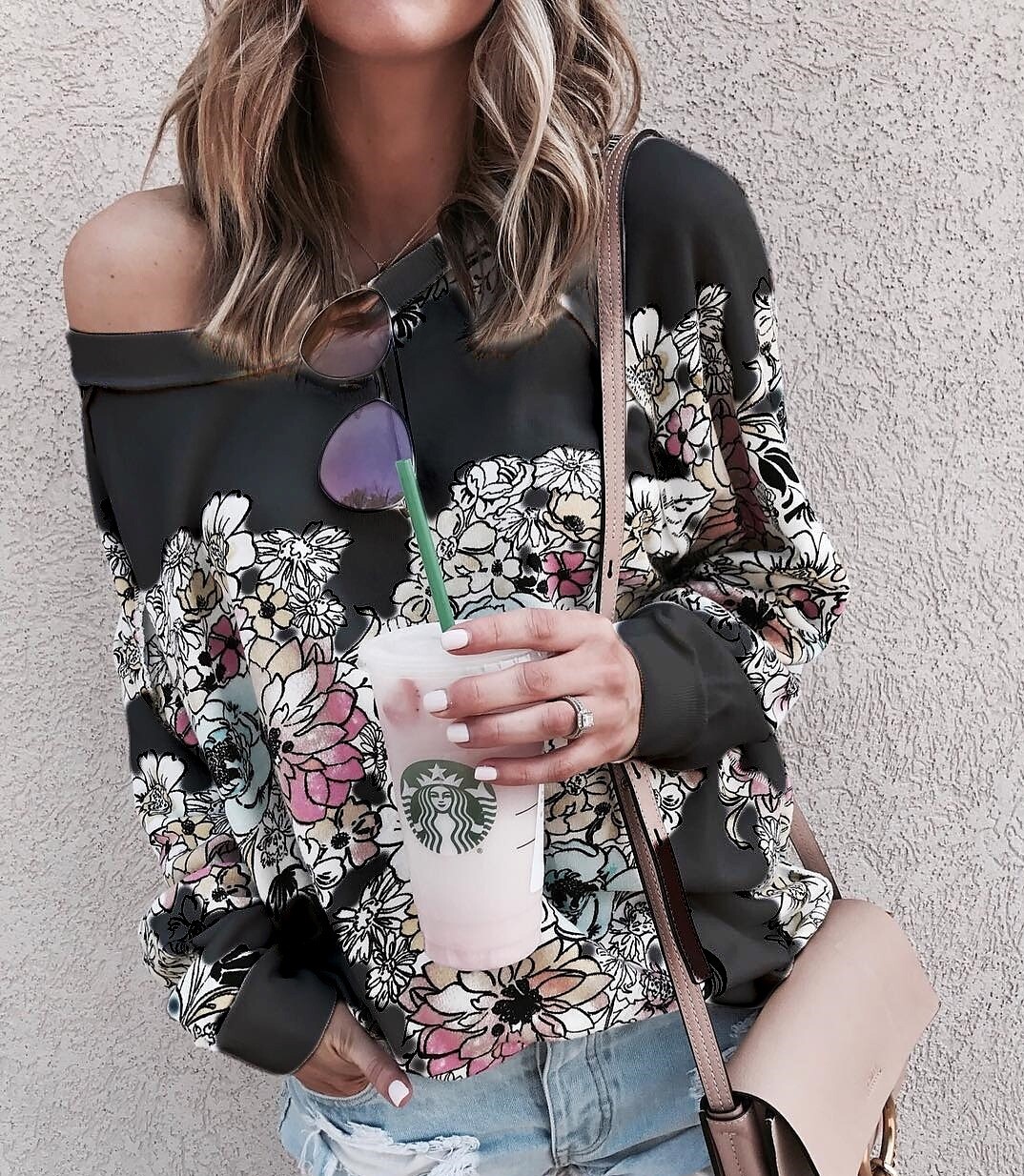 Sweatshirt Pullover Flower Print Daily Weekend Casual Streetwear Hoodies Sweatshirts White Black Gray.