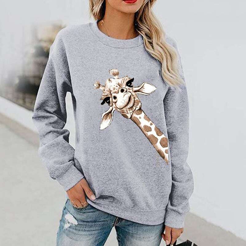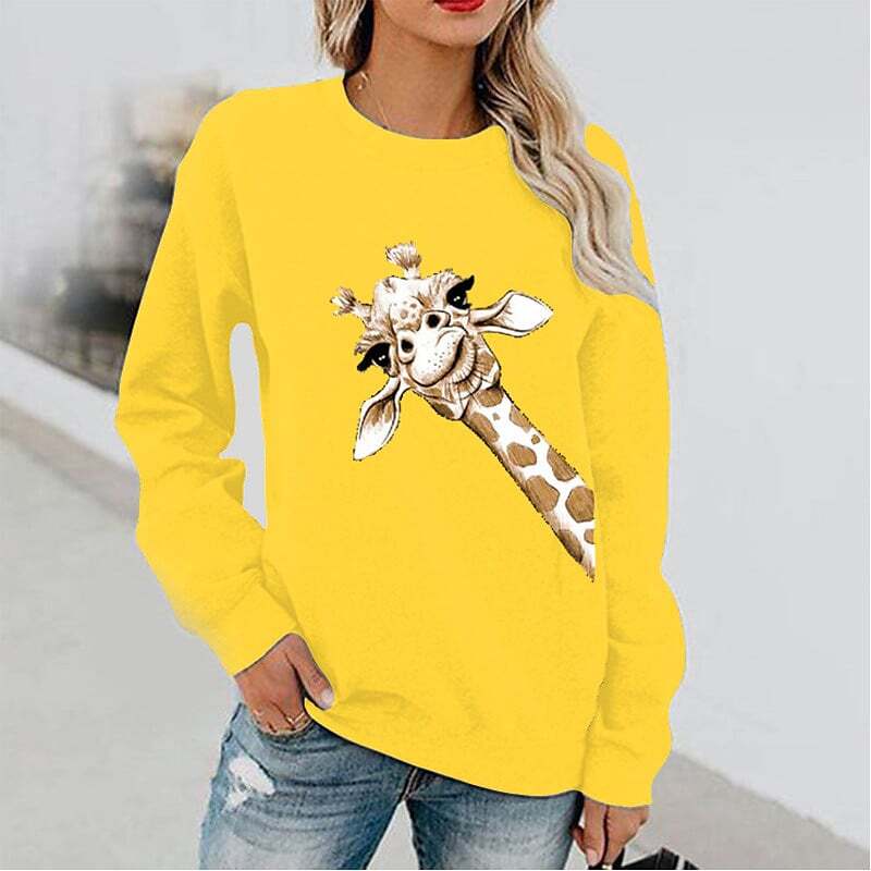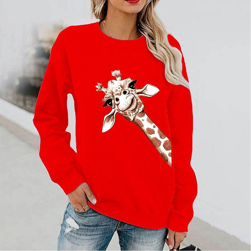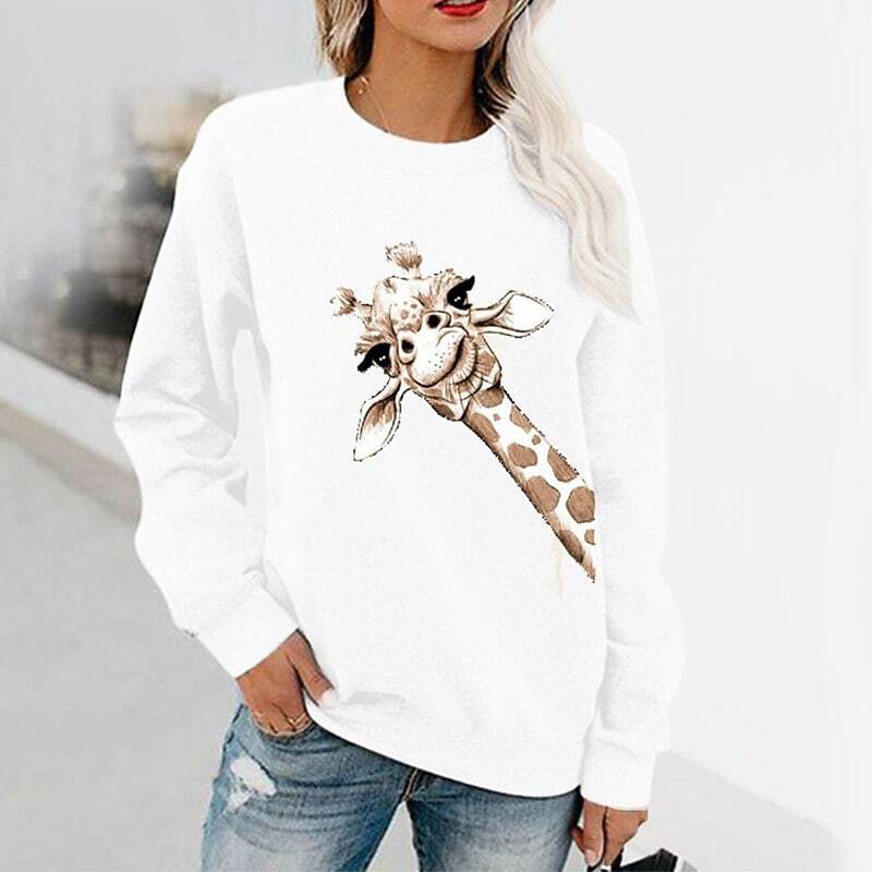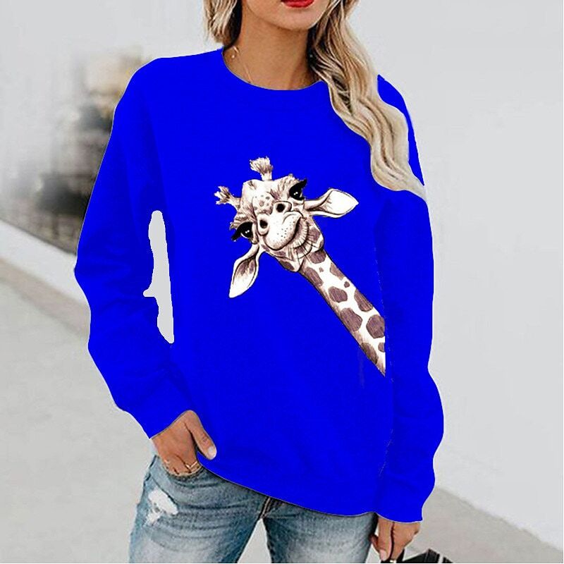 Sweatshirt Pullover Active Streetwear Print White Black Blue Giraffe Daily Round Neck Long Sleeve.