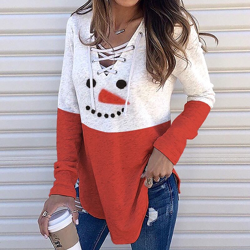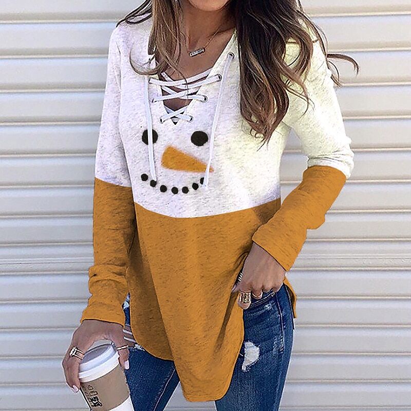 Sweatshirt Pullover Streetwear Green Blue Orange Graphic Christmas V Neck Long Sleeve.
