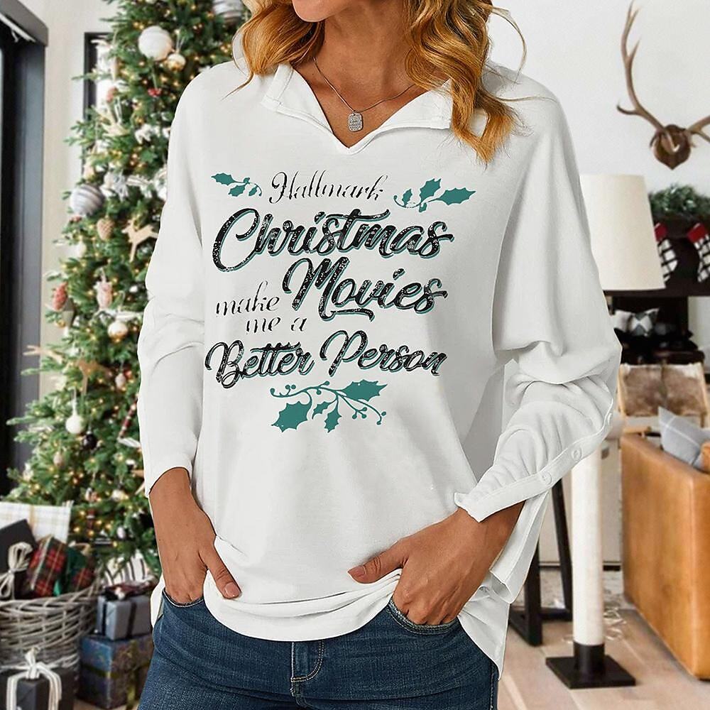 Sweatshirt Pullover Streetwear Red Gray White Graphic Christmas V Neck Long Sleeve.
