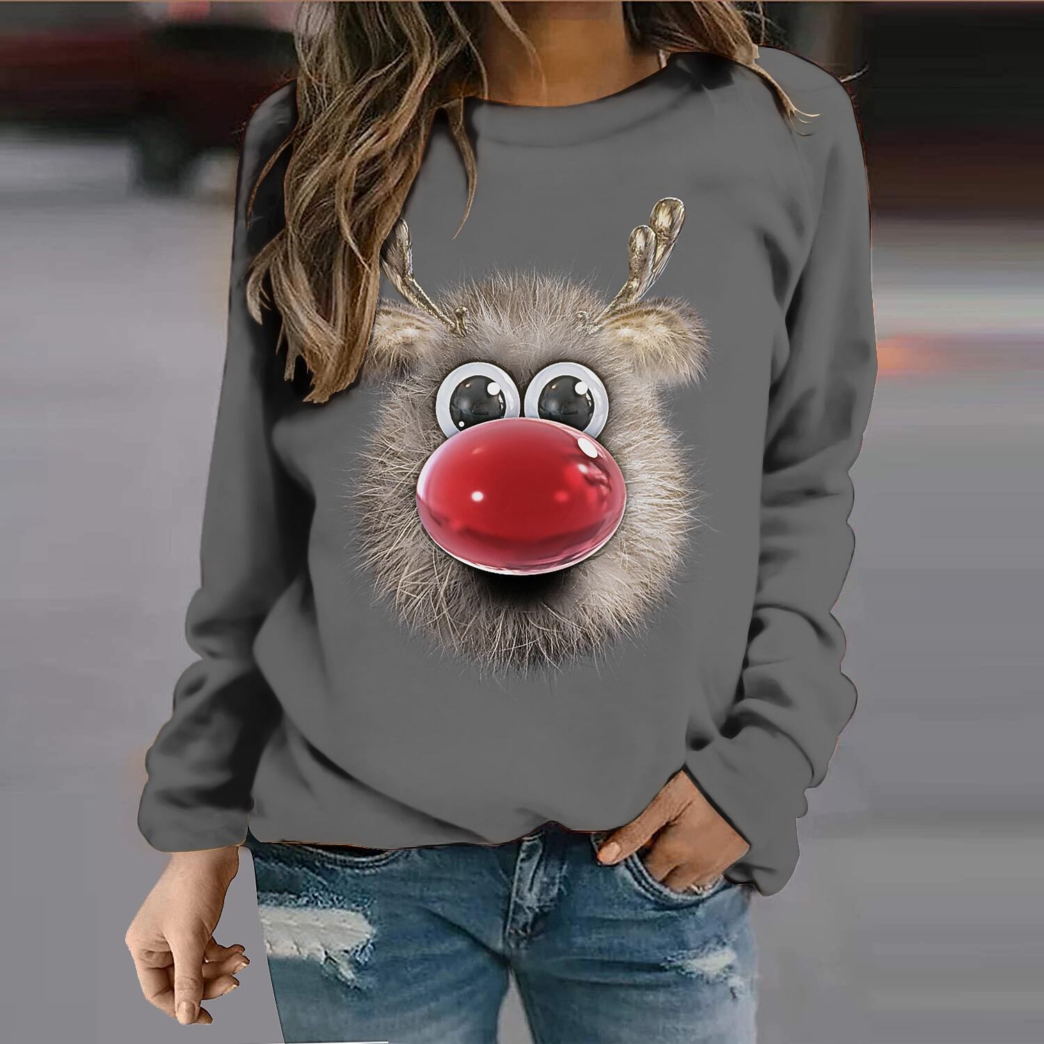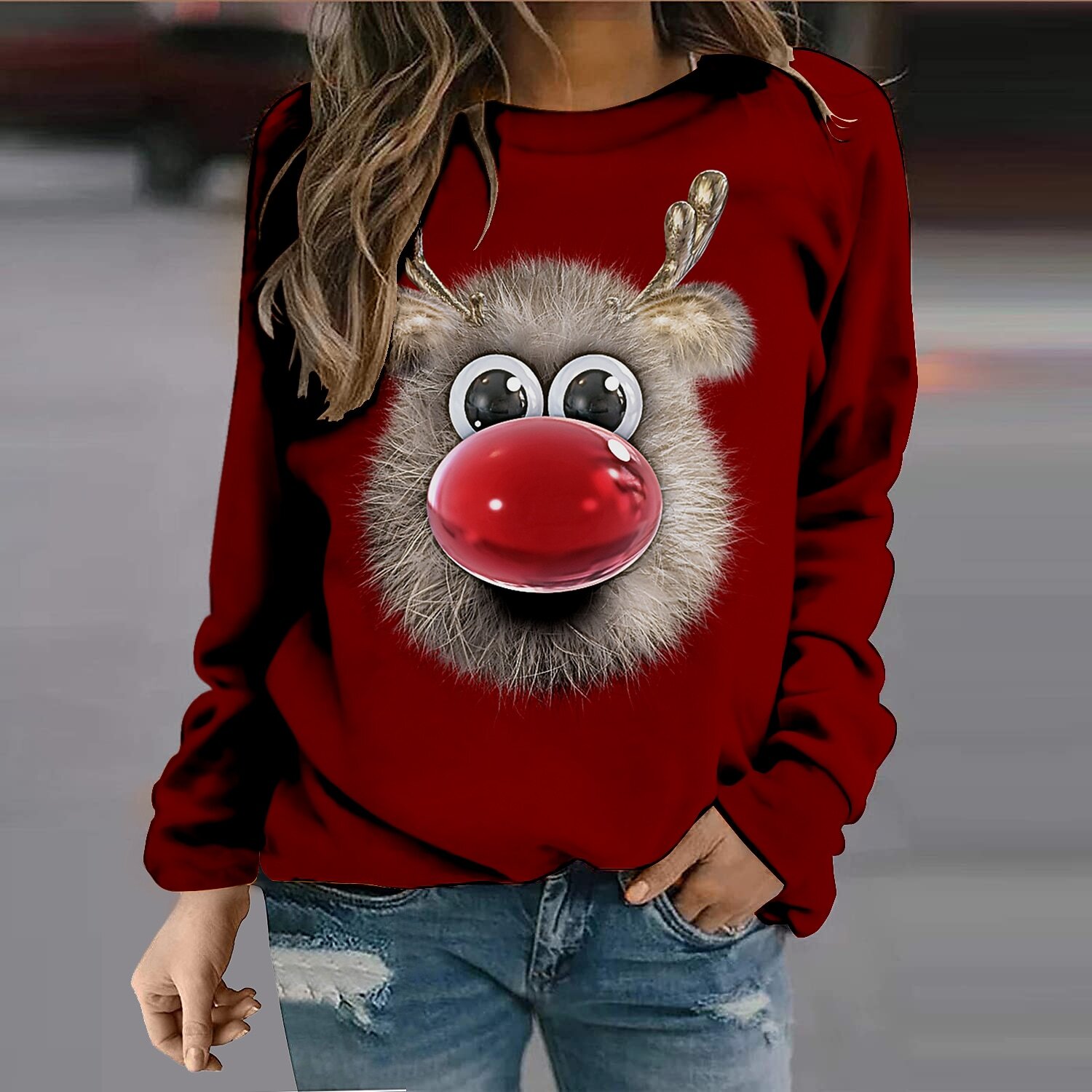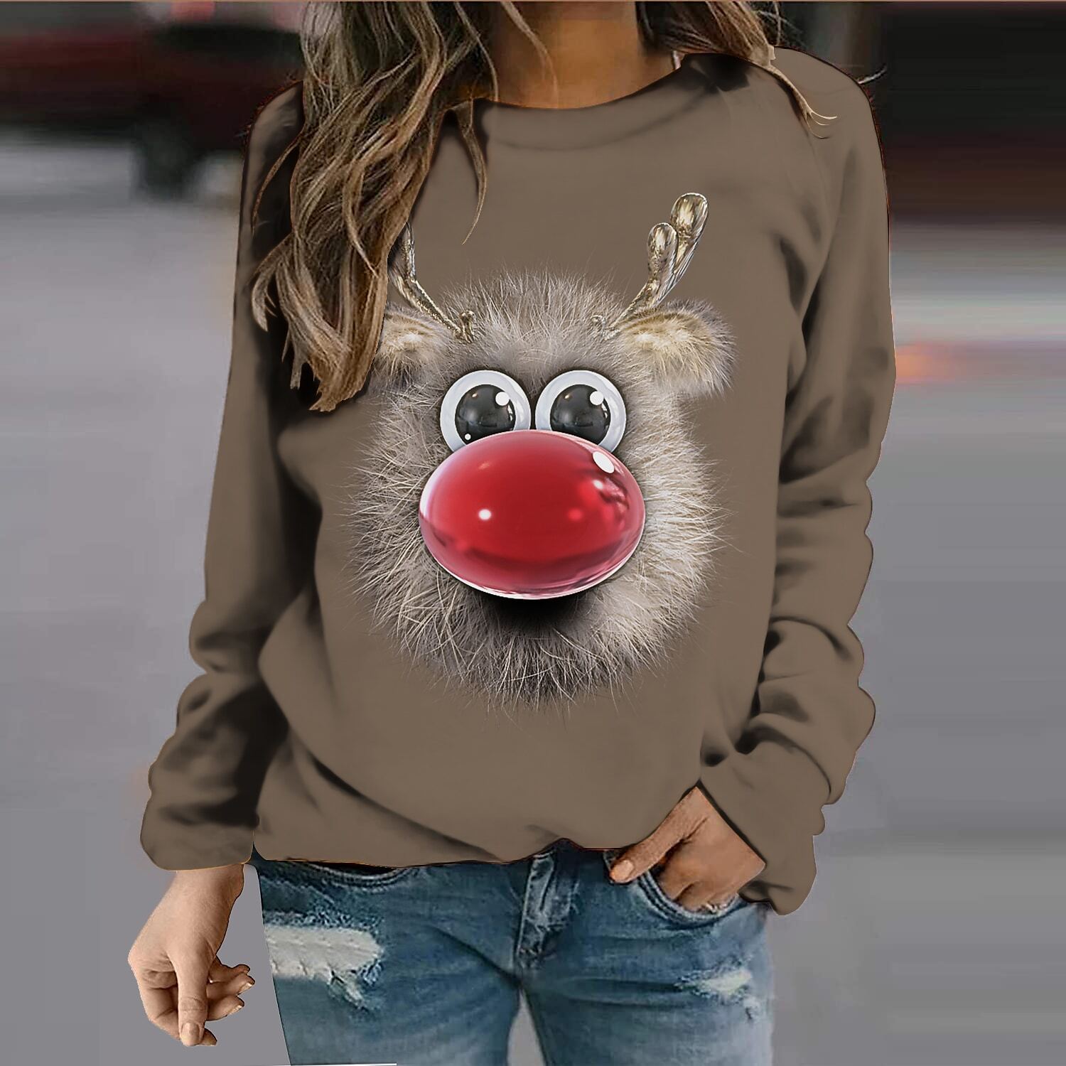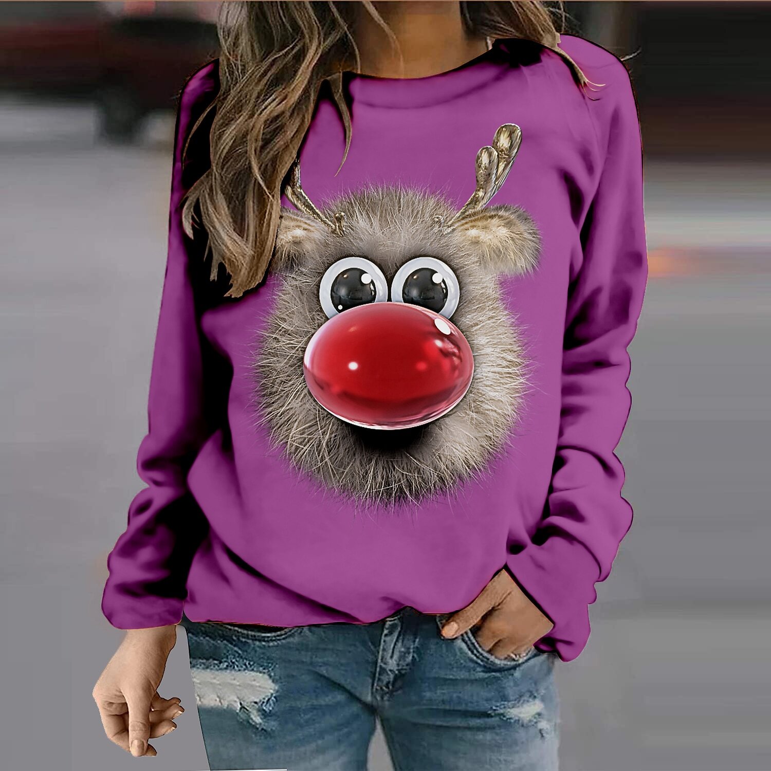 Sweatshirt Pullover Reindeer Elk Rudolph Print Christmas Christmas Gifts Casual 3D Print Active Streetwear Hoodies Sweatshirts Wine Red Purple Gray.