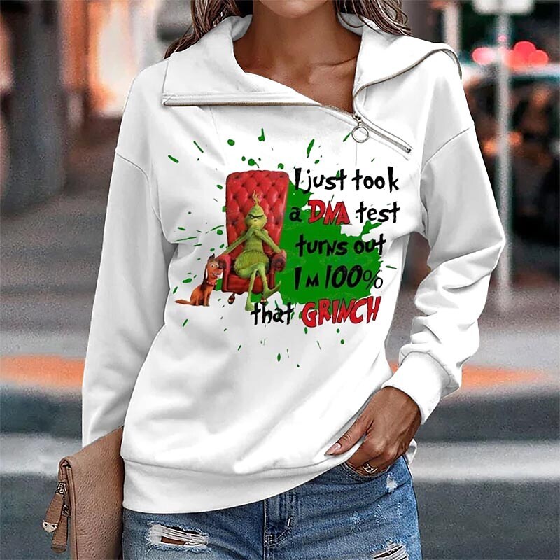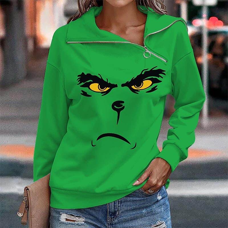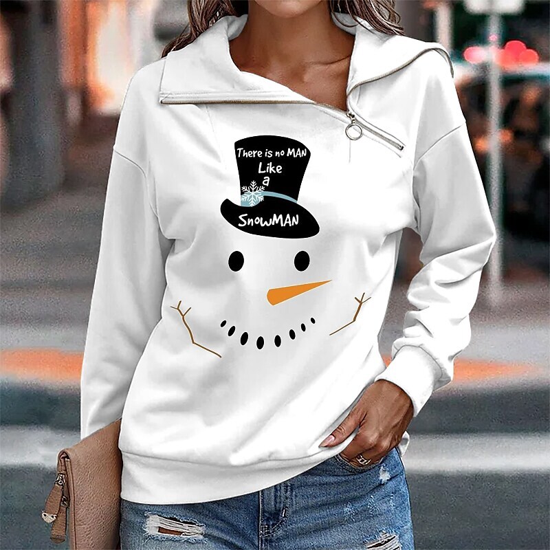 Sweatshirt Pullover Streetwear Zipper Green Beige White Graphic Snowman Christmas V Neck Long Sleeve.