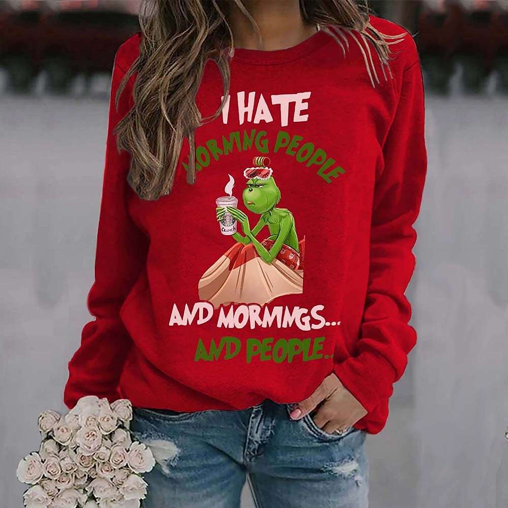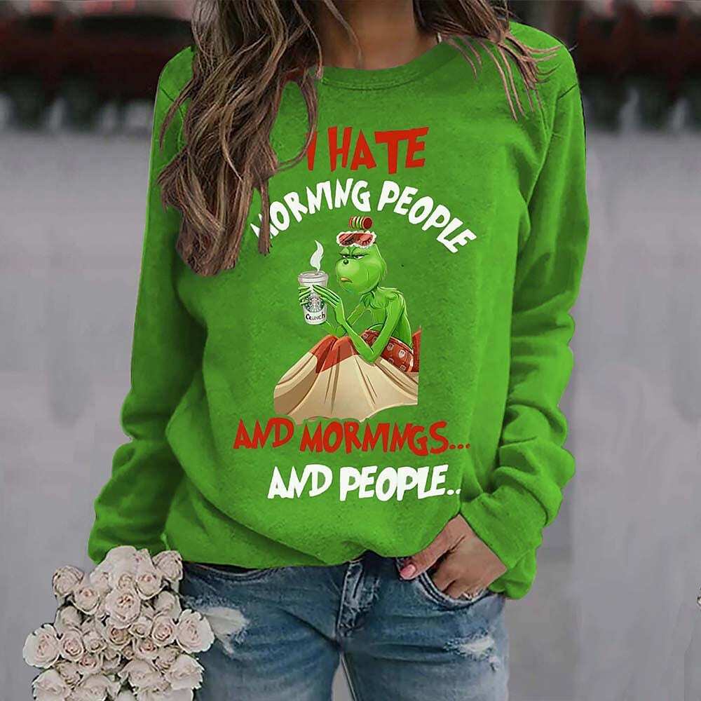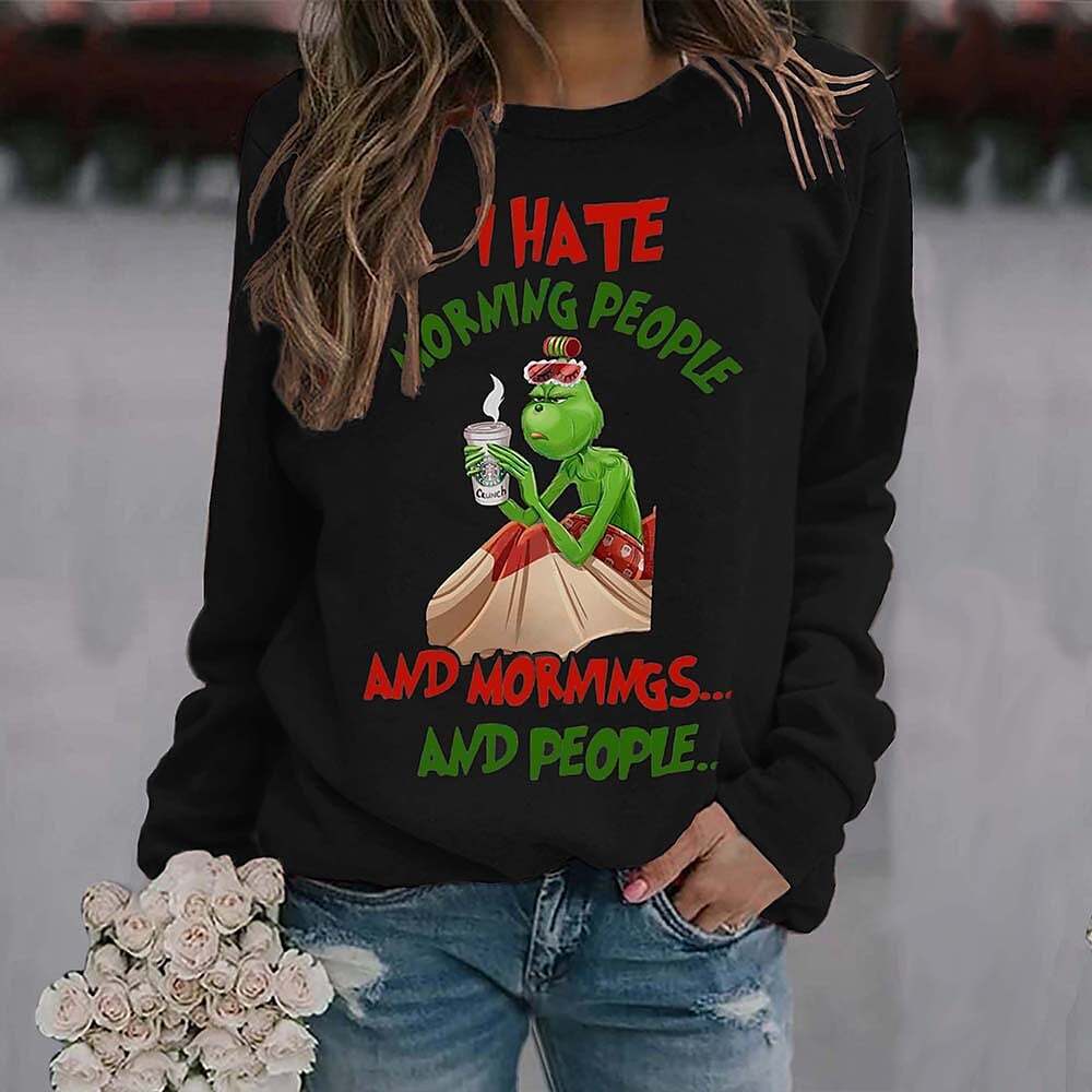 Sweatshirt Pullover Streetwear Green Black Red Graphic Christmas Round Neck Long Sleeve.