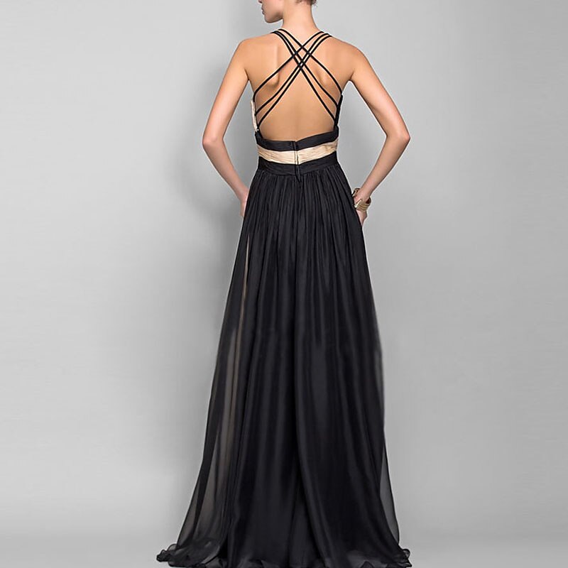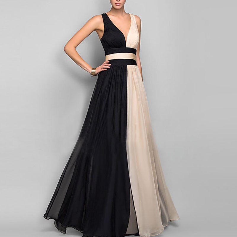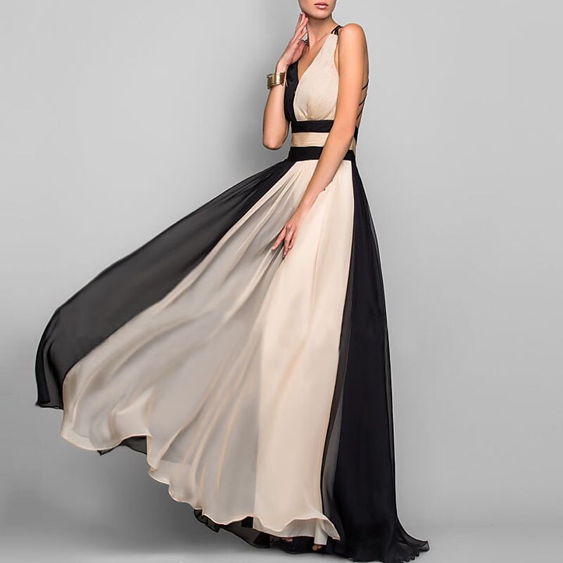 Sleeveless Color Block Backless Patchwork Fall Spring V Neck Stylish Elegant Sexy Party Prom Dress 2022