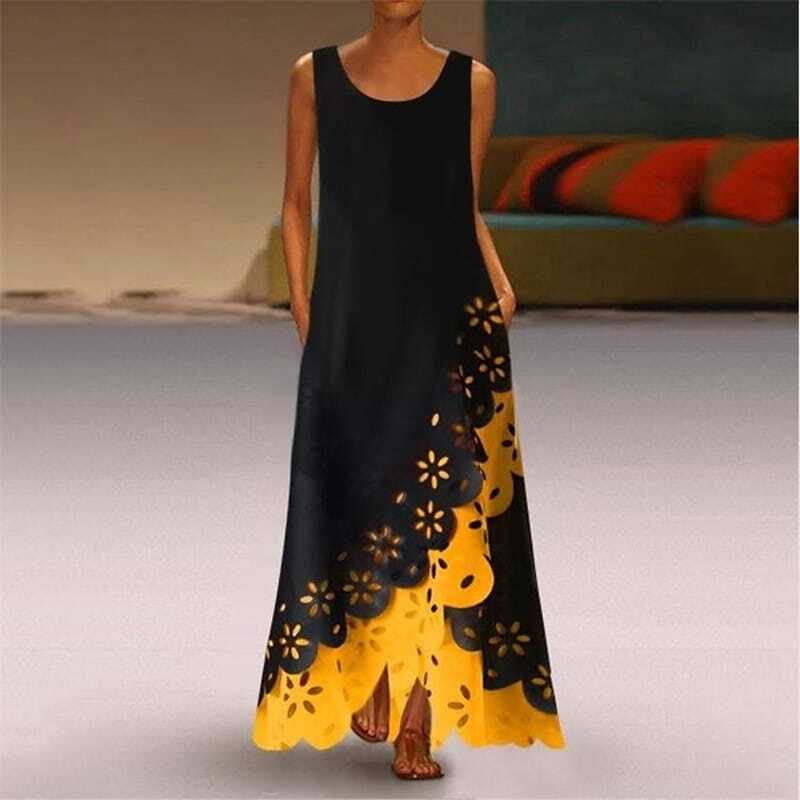 Dress Maxi long Dress Black Purple Pink Yellow Light Blue Sleeveless