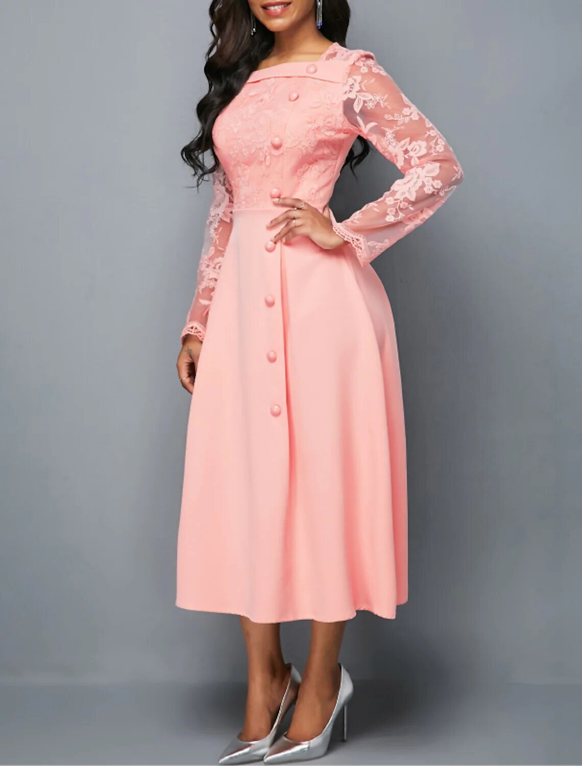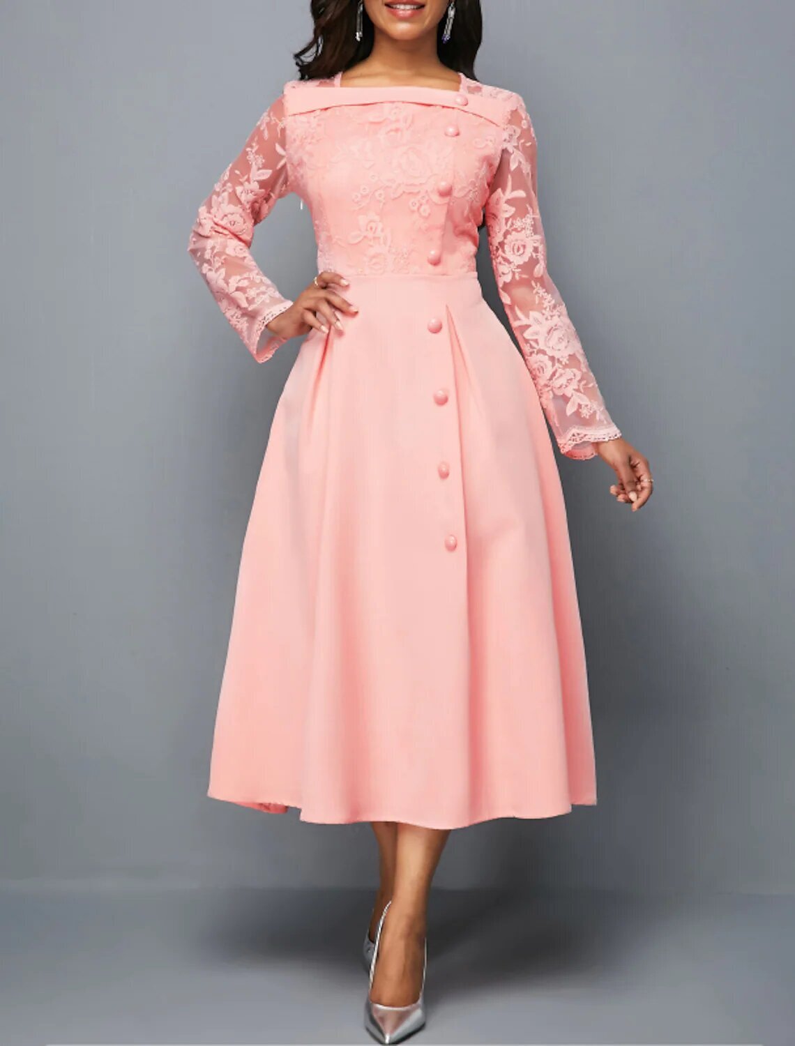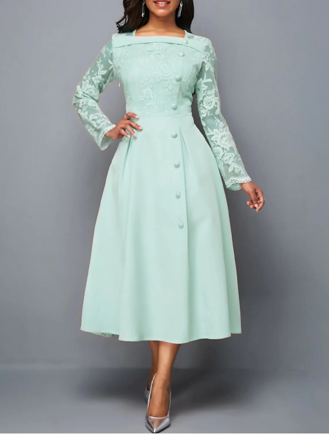 Long Sleeve Pure Color Lace Button Fall Spring Square Neck Stylish Modern 2022 .