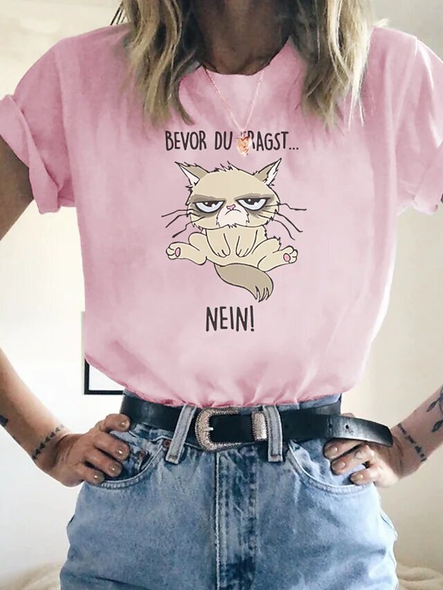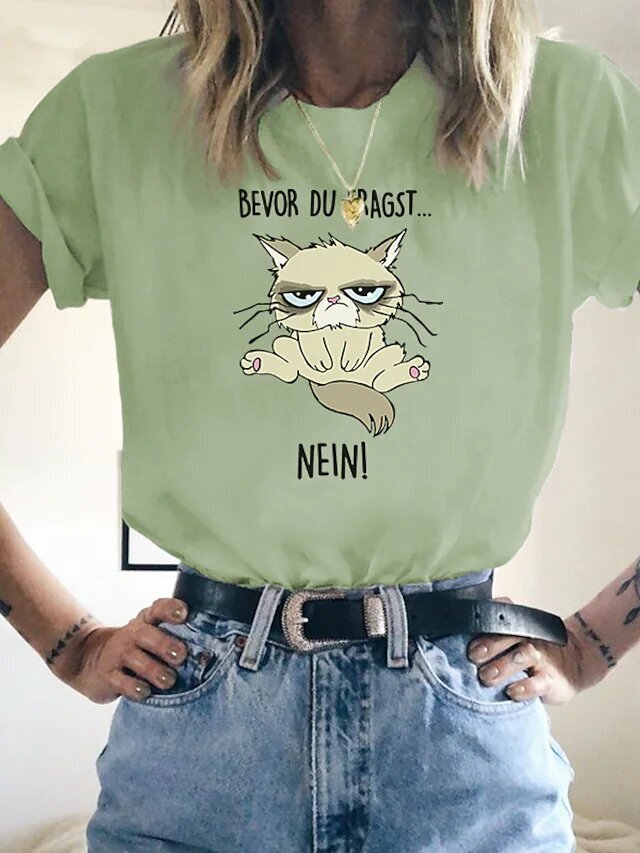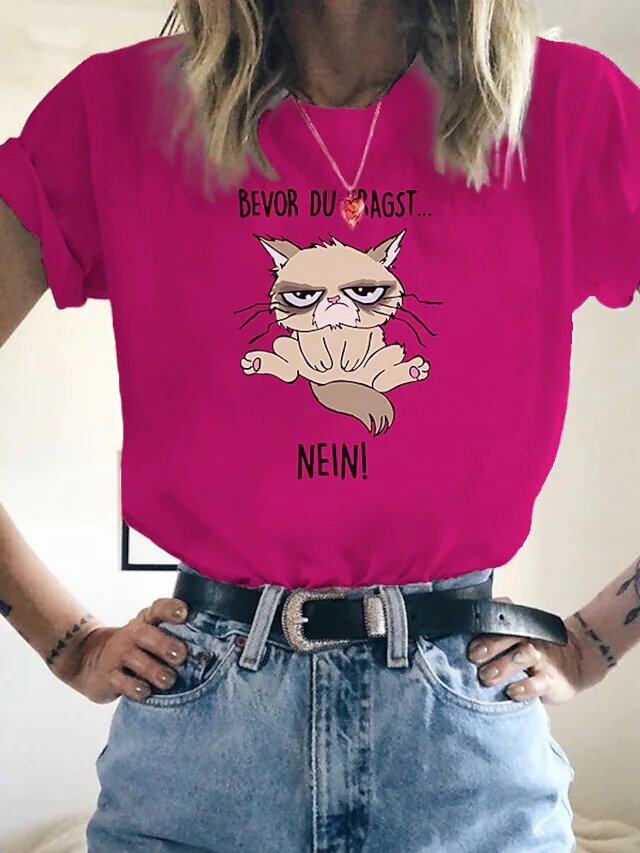 Women's T shirt Tee Cat Text Casual