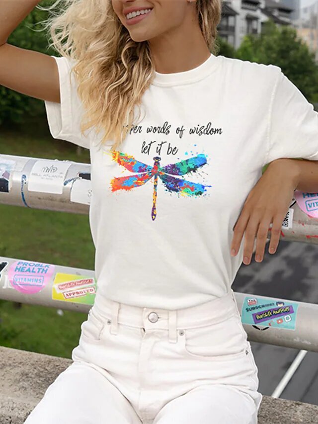 Text Casual Weekend Painting T shirt Tee Short Sleeve Print Round Neck Basic Essential.