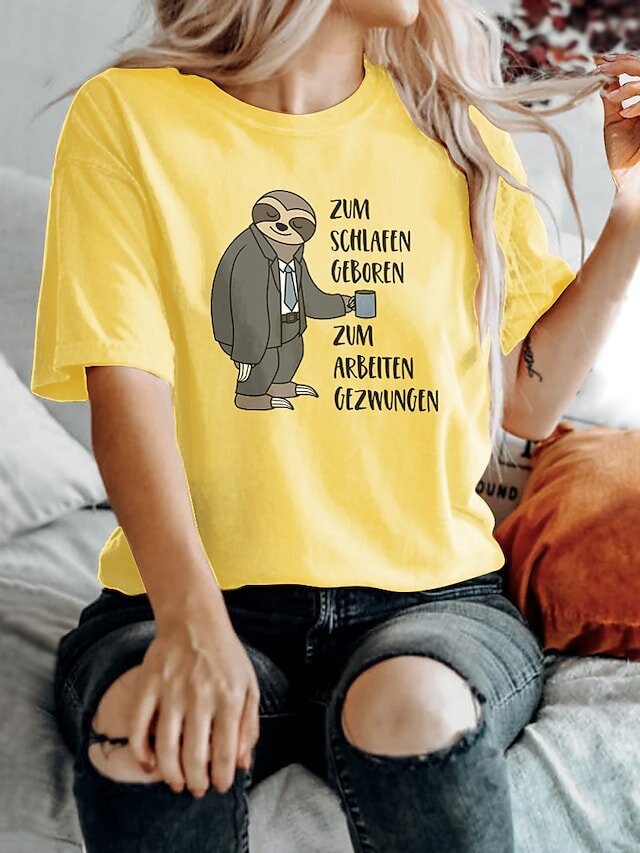 Text Casual Weekend Painting T shirt Tee Short Sleeve Print Round Neck Basic Essential White Pink Yellow.