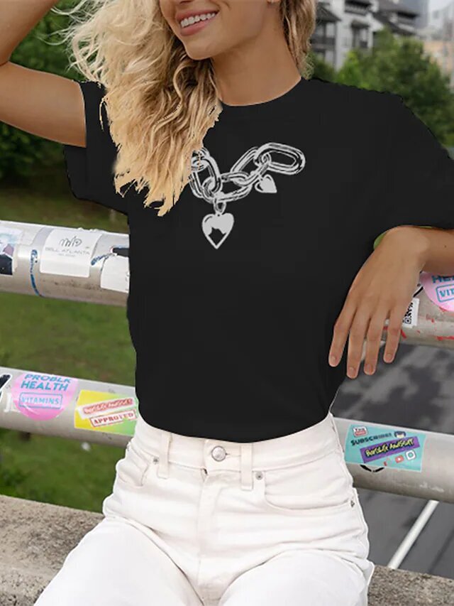 Women's T shirt Tee Heart Chains Print Casual
