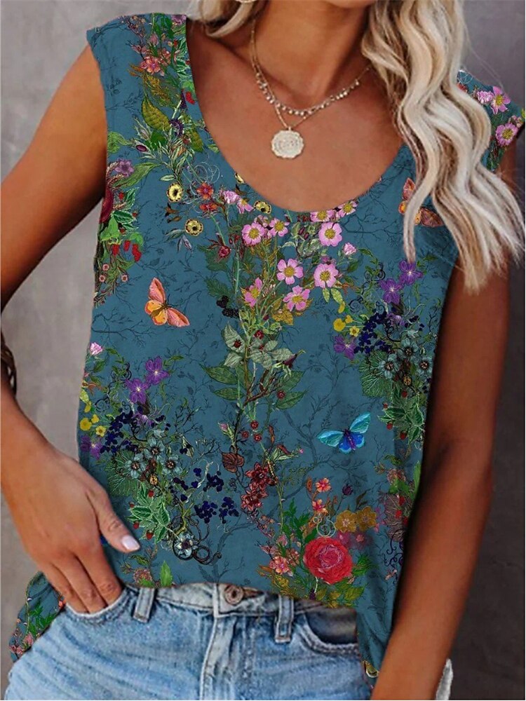 Sleeveless Patchwork Print Round Neck Casual Beach