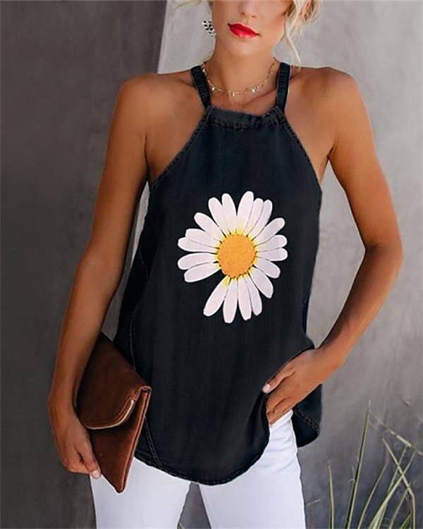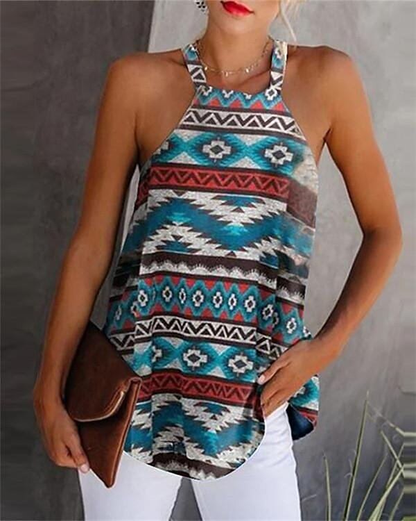 Sleeveless Print Round Neck Ethnic Casual Streetwear