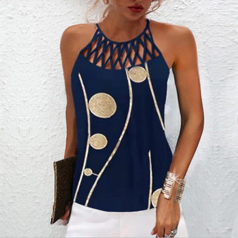 Sleeveless Cut Out Print Round Neck Streetwear