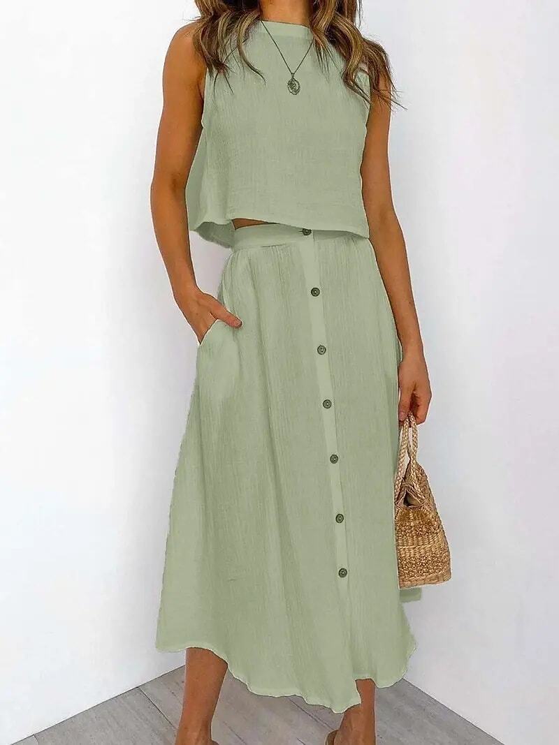 Tank Top Shirt Skirt Sets Basic Streetwear Green Blue Casual Vacation Plain Crew Neck.