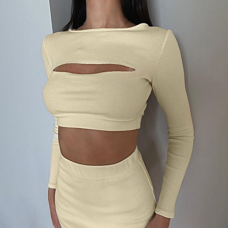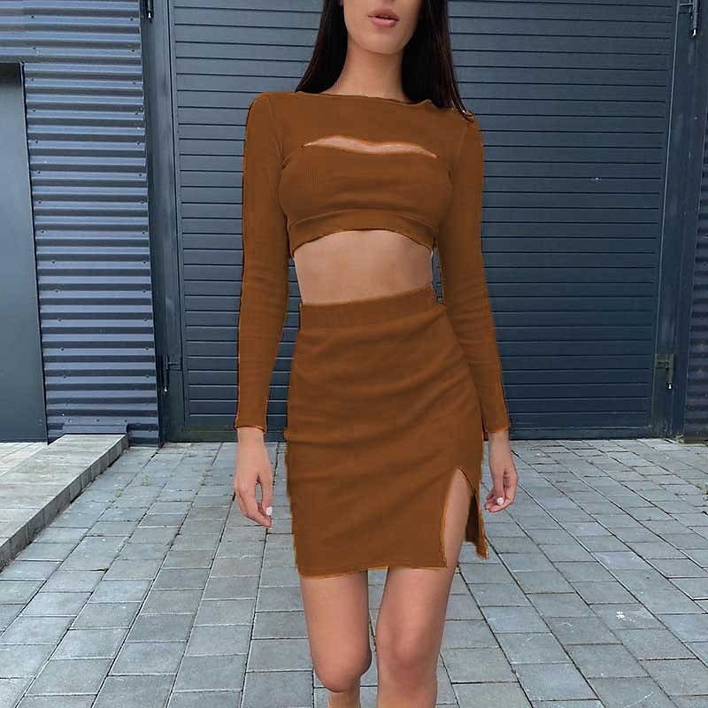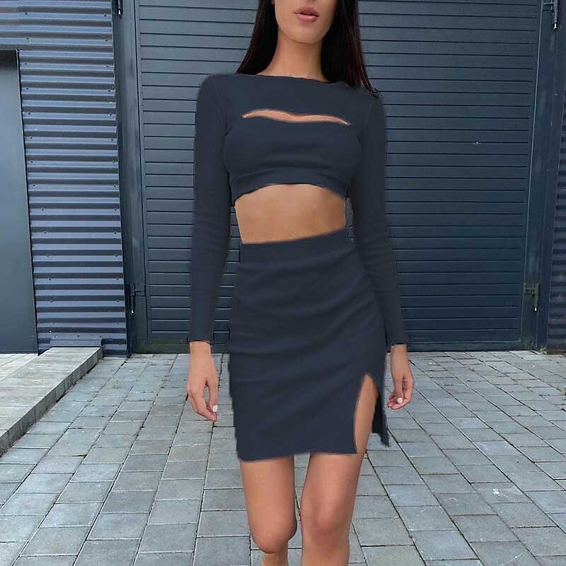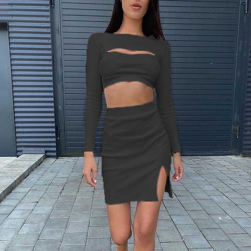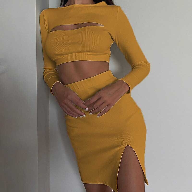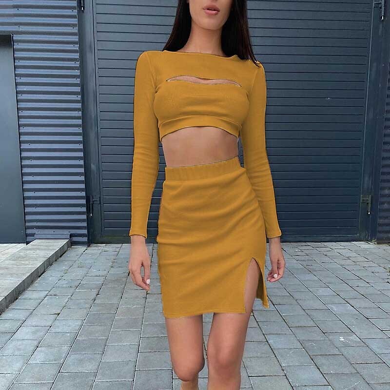 Tracksuit Skirt Sets Streetwear Pink Yellow Casual Daily Plain Split Cut Out Crew Neck.