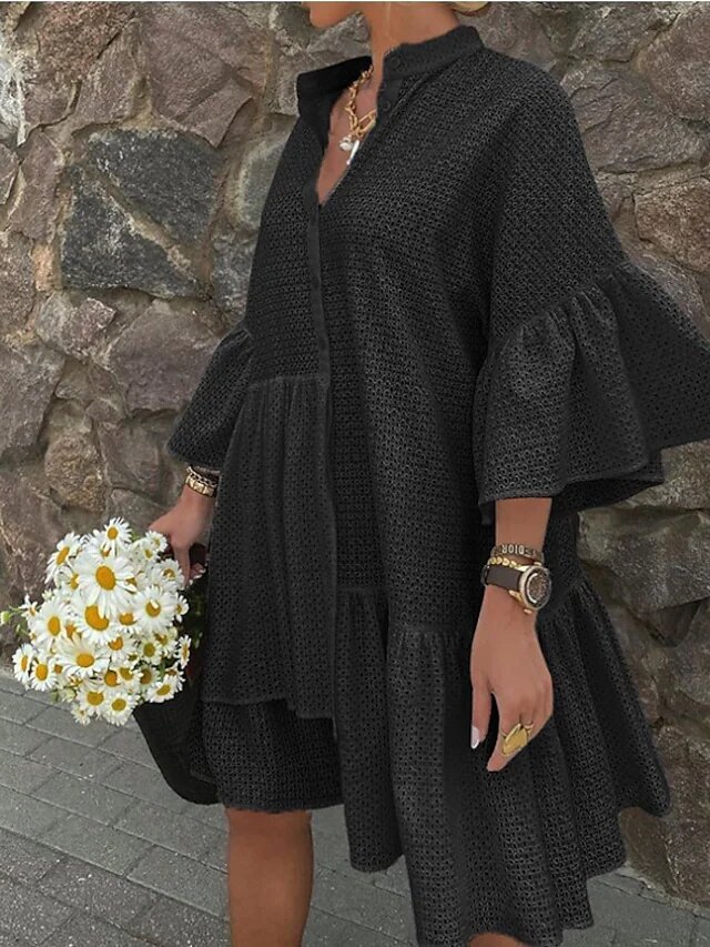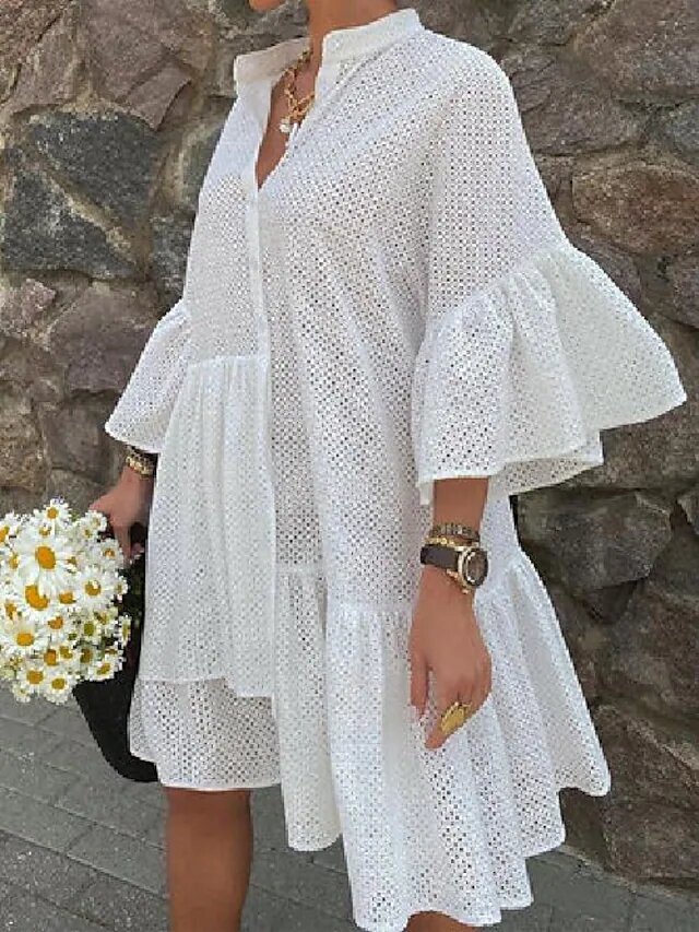 White Black Long Sleeve Solid Color Hollow Out Spring Summer V Neck Casual.